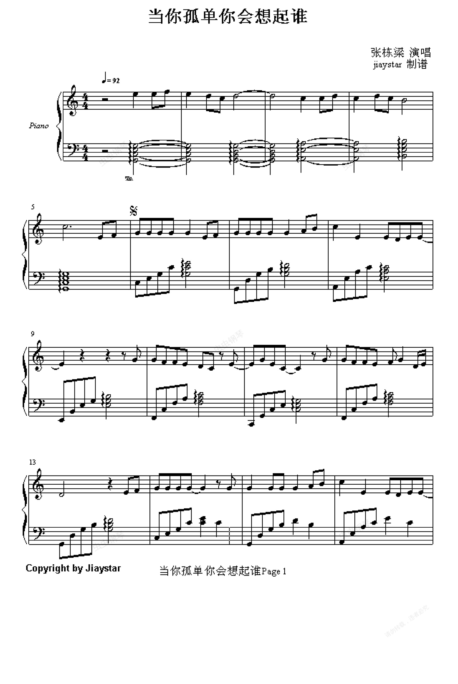 伴奏部分简化了一点。 曲谱:当你孤单你会想起谁演唱:311调子:Key = C ----------------                                                                                    C                G                Am     Em你的心情總在飛   什麼事都想去追  想抓住一點安慰                                                                                  F           C           F             G你總是喜歡在人群中徘徊  你最害怕孤單的滋味                                                                                    C            G              Am       Em你的心那麼脆   一碰就會碎   經不起一點風吹                                                                                  F           C           F            G你的身邊總是有許多人陪  你最怕每天的天黑                                                                                    Am           Em          F       C但是天總會黑  人總要離別   誰也不能永遠陪誰                                                                                    Am           Em          F         G而孤單的滋味   誰都要面對  不只是你我會感覺到疲憊                                                                                     C          G      Am          Em當你孤單你會想起誰 你想不想找個人來陪                                                                               F你的快樂傷悲                                                                                C             F       G       C只有我能體會  讓我再陪你走一回