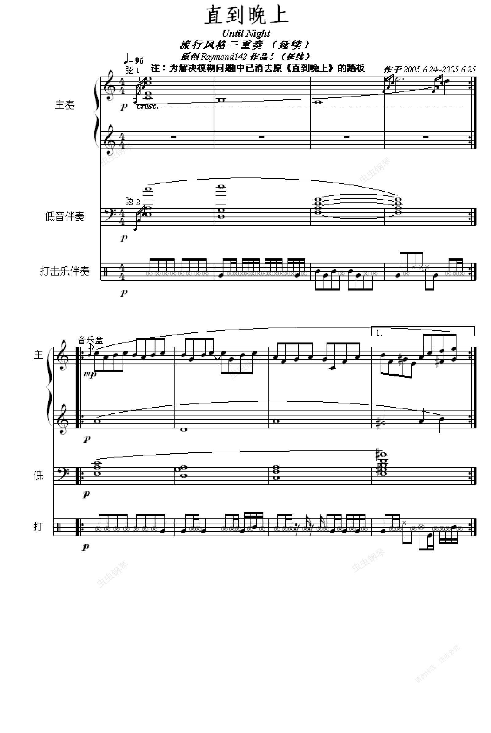 1. 本曲通过消除踏板,改正了原《直到晚上-流行风格三重奏》因踏板酿成声音严重模糊的“恶果”,这样,无论谁都能听到这首曲子的清晰声音了。