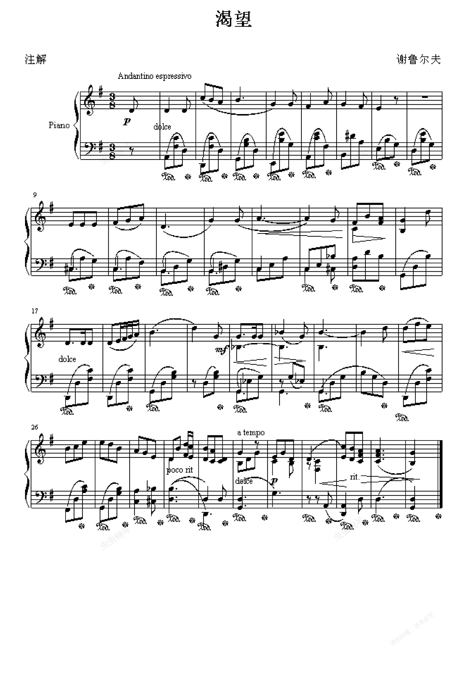 《渴望》选自《钢琴名曲大全》,为谢鲁尔夫所作,是一首很短的钢琴曲。