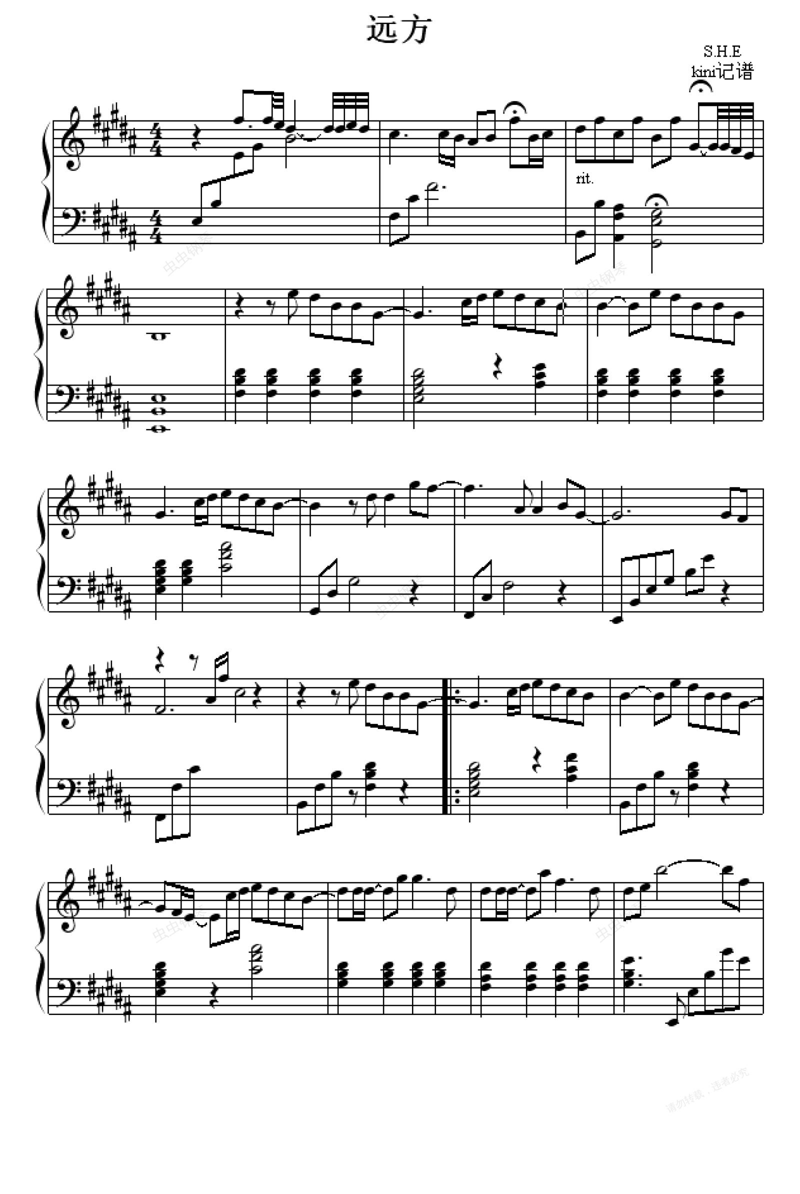 远方 歌手:s.h.e. 专辑:super star 远方 曲 fromm calum howie 词:施人诚 编:洪敬尧 1=C 转 D G Fmaj7 |0 0/宽厚肩膀|手指干净而修长| C #F Gus4 - 0/笑声像大海|眼神里有阳光| Am Em F Gsus4 G - 0/我想象你|一定就是|- - 0 这样|- - - -|: C F G7 0 0/还没出现|- 0/就已对你爱恋| C F G 0 0/还没遇见|- 0/就象有了思念| Am C/E 要给我的爱如果|你还在灌溉要| F G 我等待我|就等待 - -| C F G Am F G 0 0 北方南方|- 某个远方|一定有座|- 爱情 - 天堂| C F G Am F G C Em F Gsus4 - - 我们用爱|- 幸福对方|- - 共享一对|- 翅膀 - 飞翔|[1啊 - - |- - - - :| Am Em/B F E E/#F E/#G [2 - 虽然偶尔会孤|单虽然等候太漫|长 万一青春太短| woo~ - - 但是| Am C/G F G D 只要看远方就能|再坚定信仰只有|最好的你能给|最好的爱 - |(1=D)0 0 北方南方| G A Bm G A D G A Bm - 某个 - 远方|一定有座| - 爱情 - 天堂|- - 我们用爱| - 幸福 - 对方| - - 共享一对| Asus4 A D G A Bm Asus4 A - 翅膀 - 飞翔|- - 我很确定|- 不远 - 远方|- - 会有我们| - 爱的 - 天堂| D G A Bm Gmaj7 A D G A D - -心会温暖|- 笑会 - 灿烂|- 风 沙 星 |辰 - 永远相 |伴 - - -|- - - -|1 - - -||