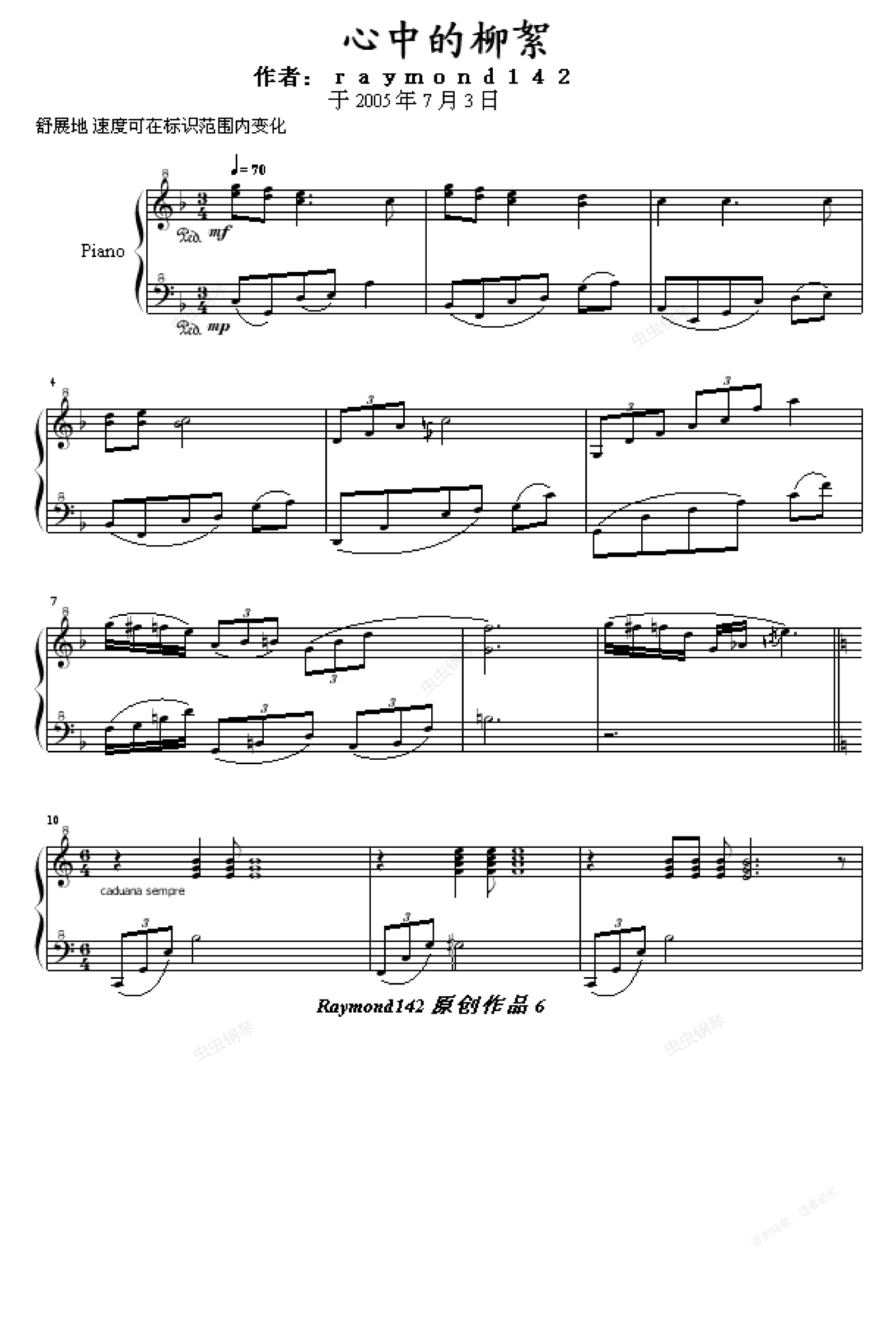 钢琴谱:心中的柳絮
