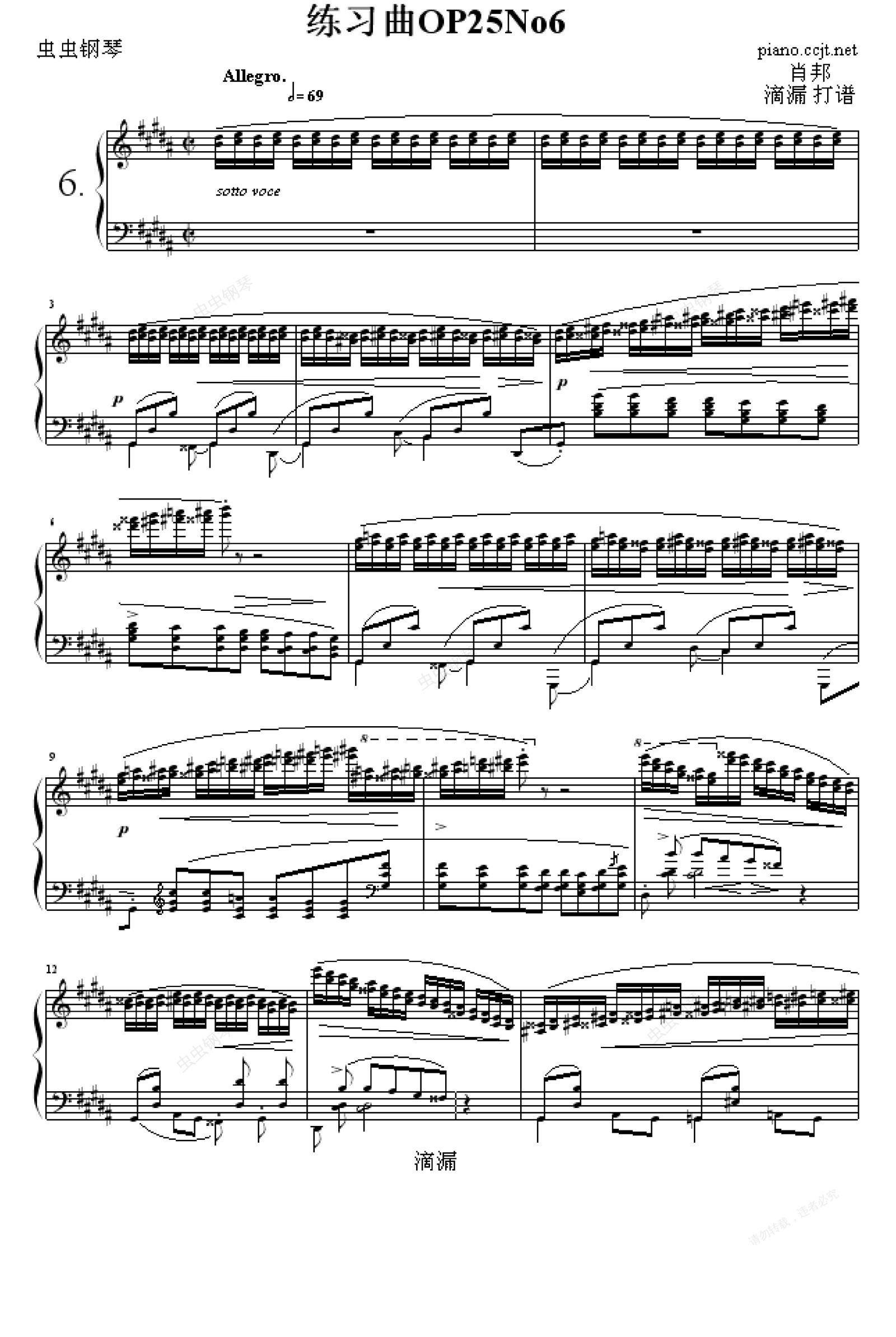 钢琴谱:练习曲OP25No6