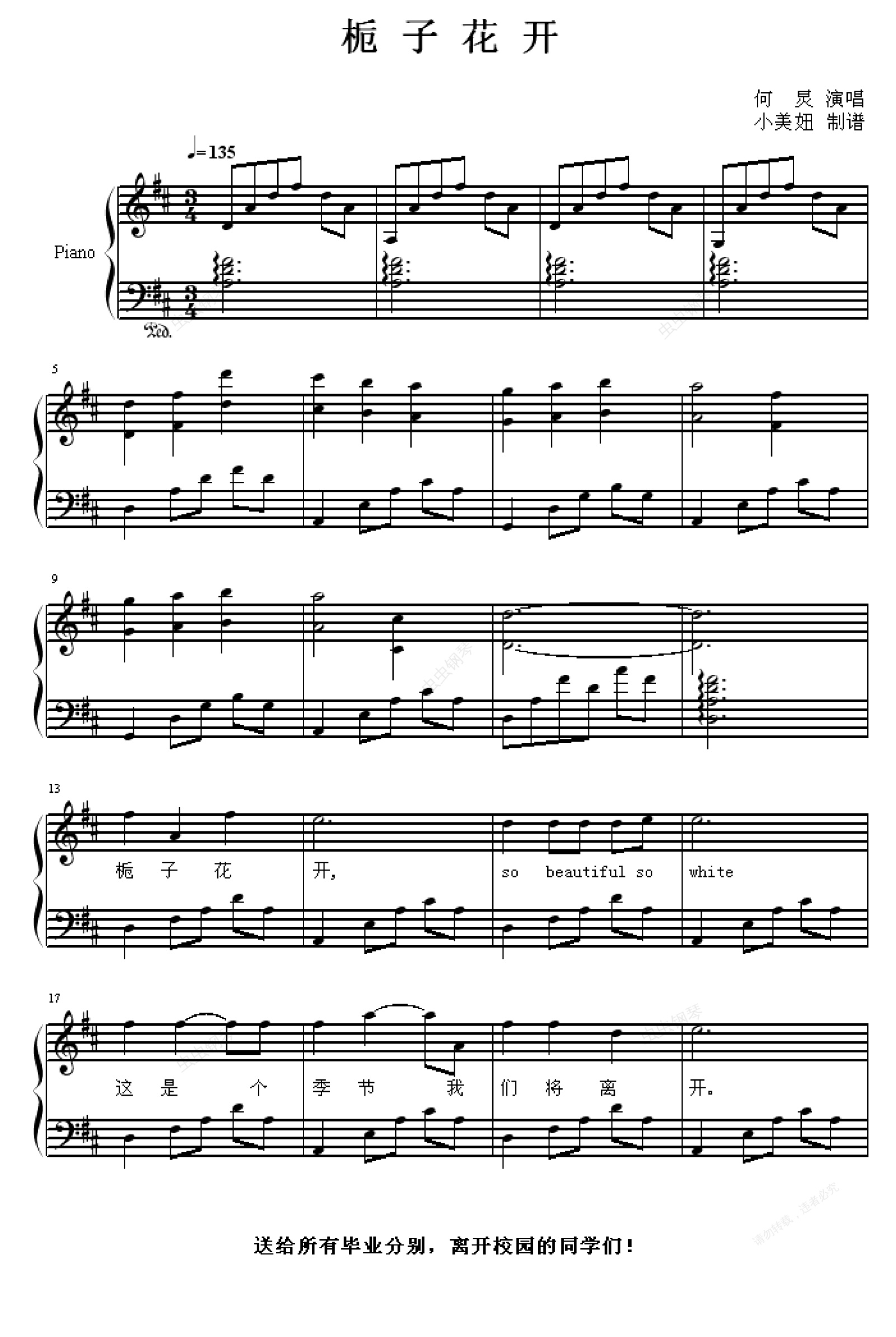 钢琴谱:栀子花开