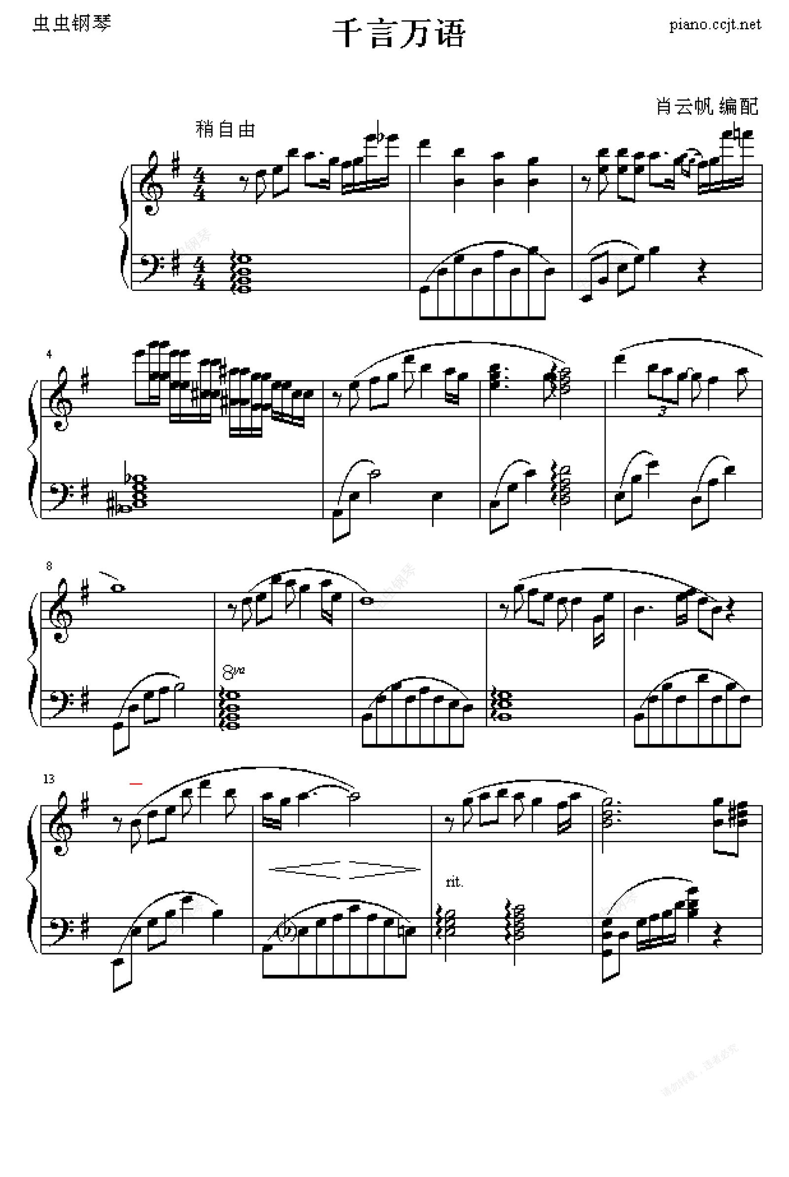 钢琴谱:千言万语