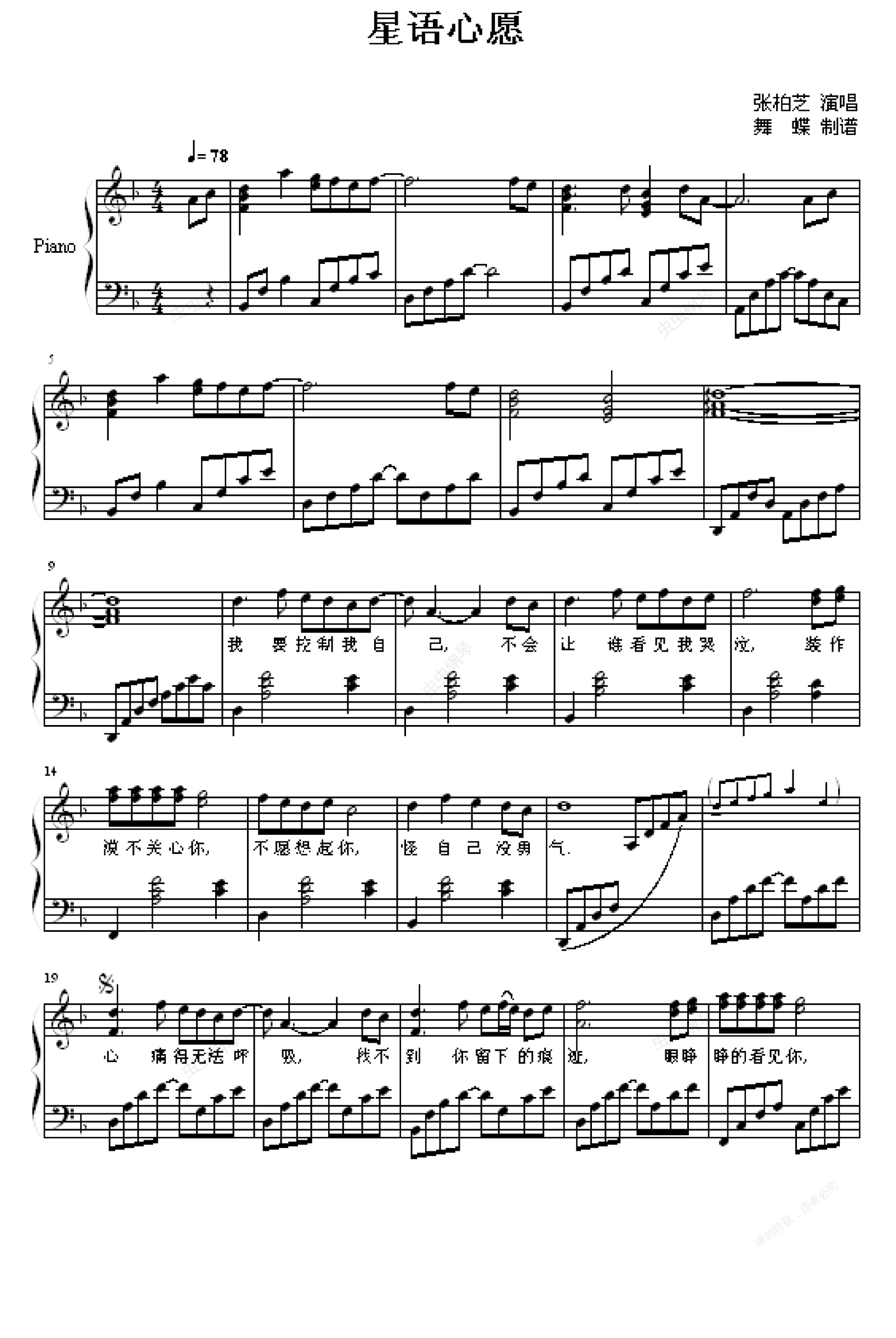 钢琴谱:星语星愿-舞蝶