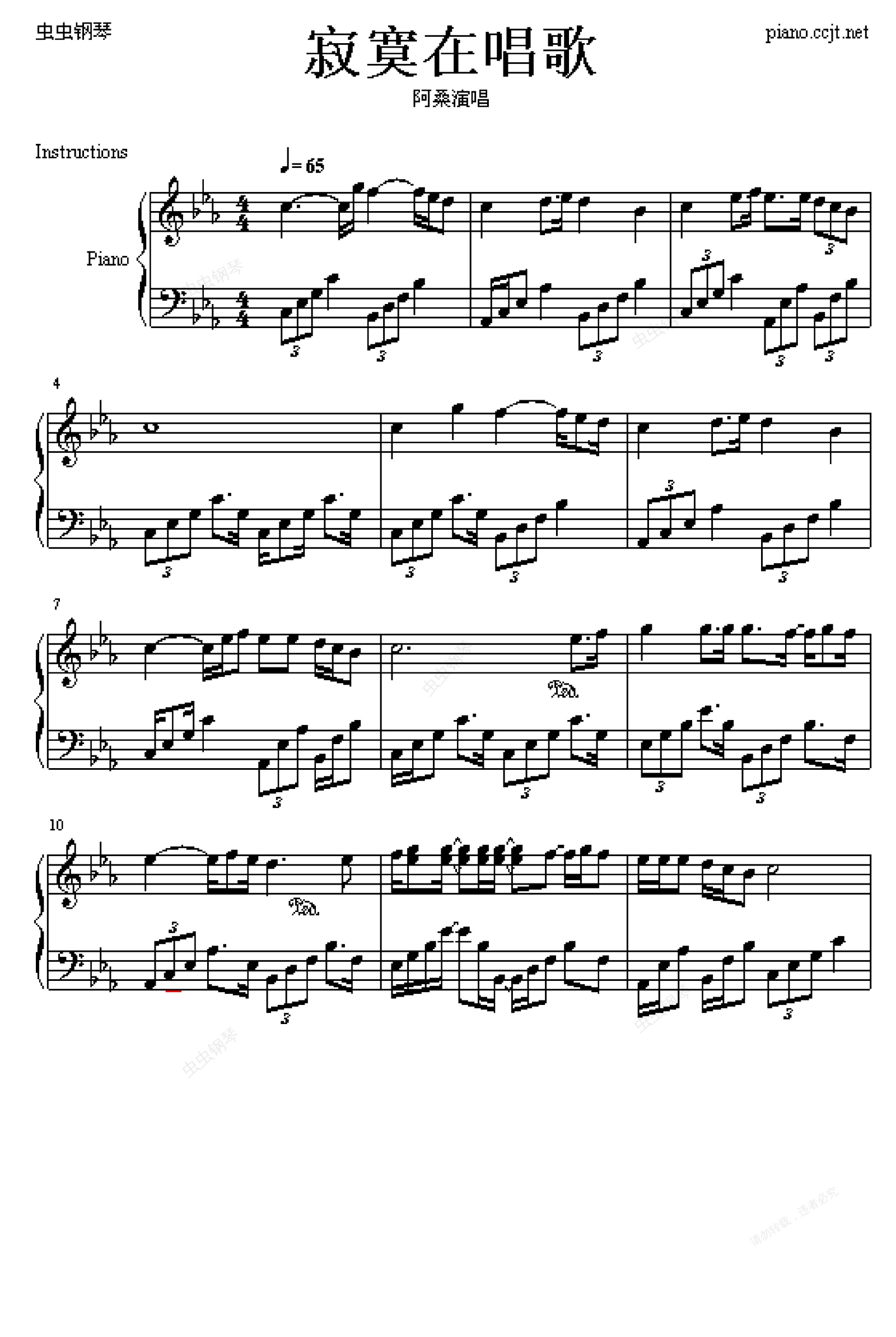 钢琴谱:寂寞在唱歌