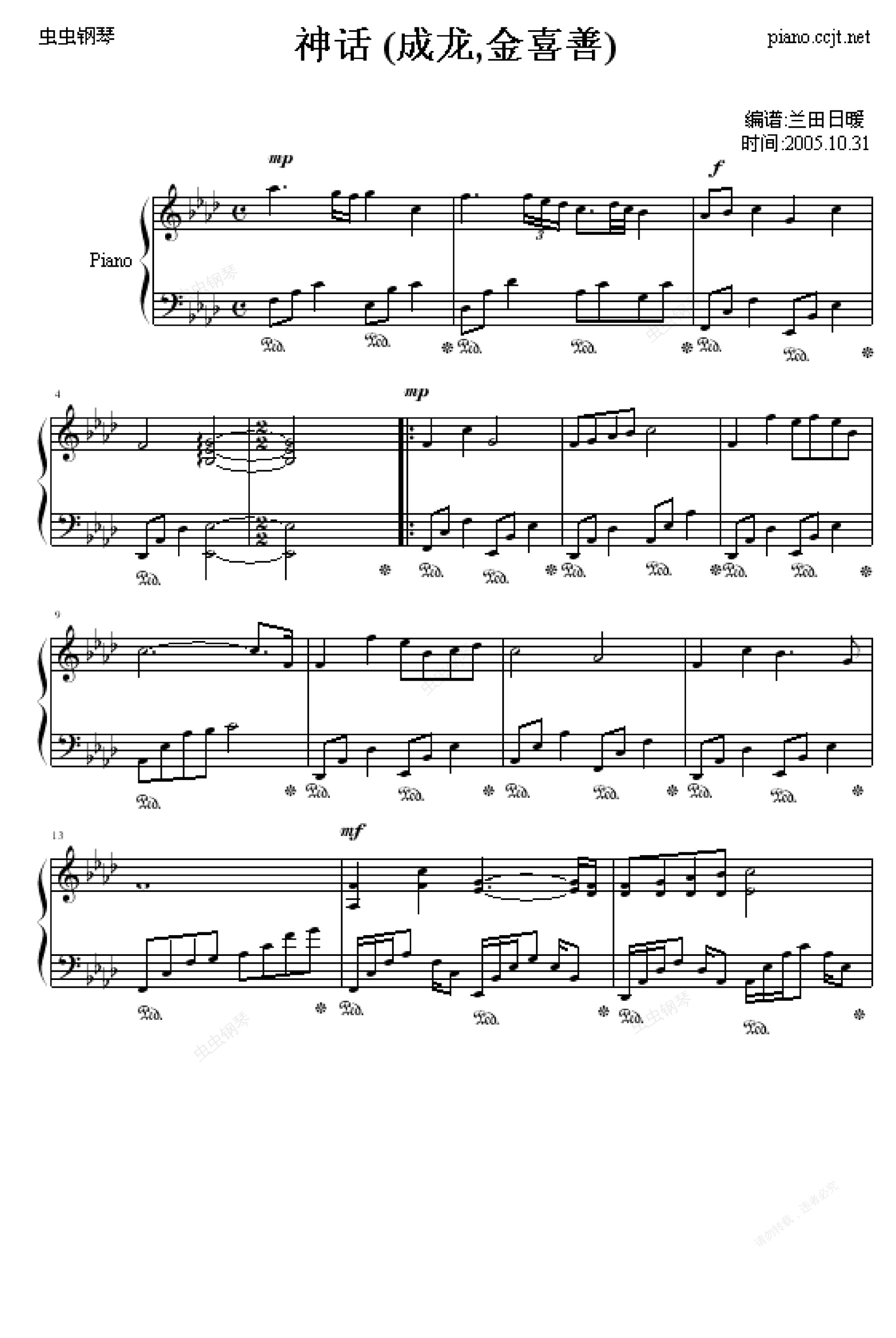 小弟自编神话独奏钢琴谱,有不足之处,望指点批评,以便修改完善.谢谢! #Fm #Cm D A