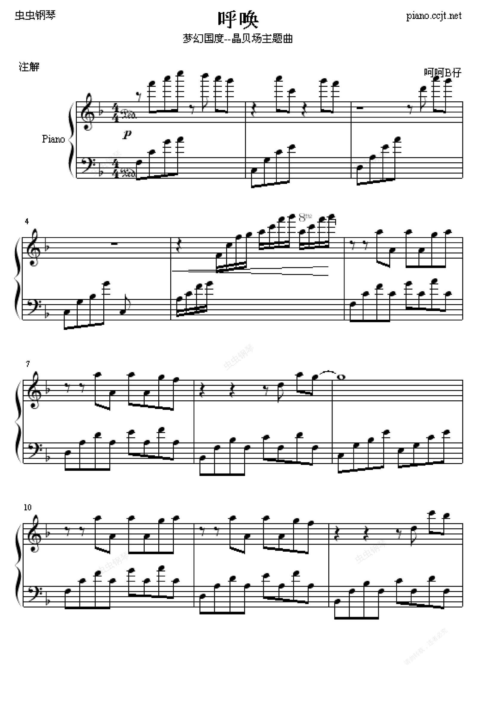 钢琴谱:梦幻国度--晶贝场主题曲