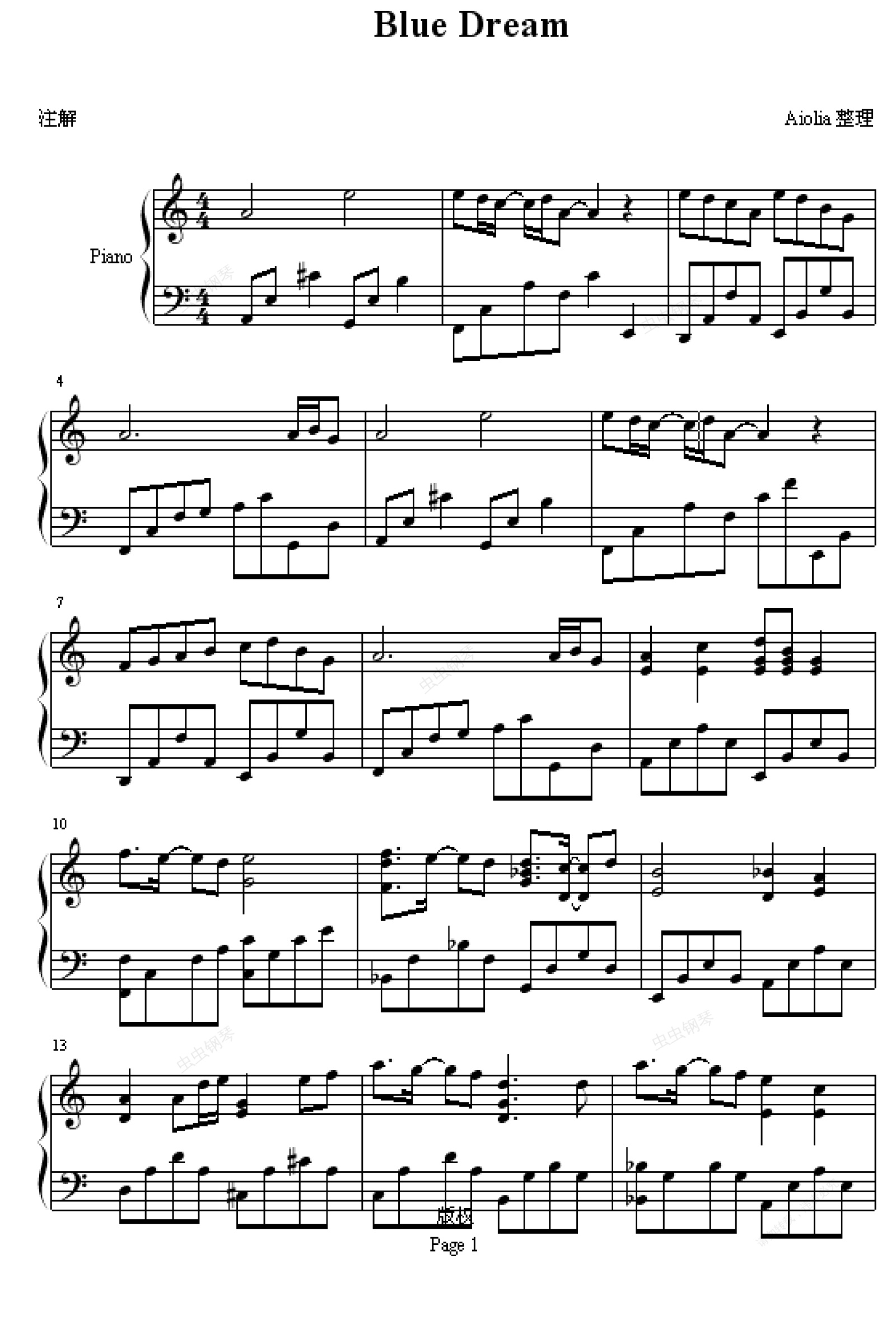 钢琴谱:蓝色的梦-圣斗士