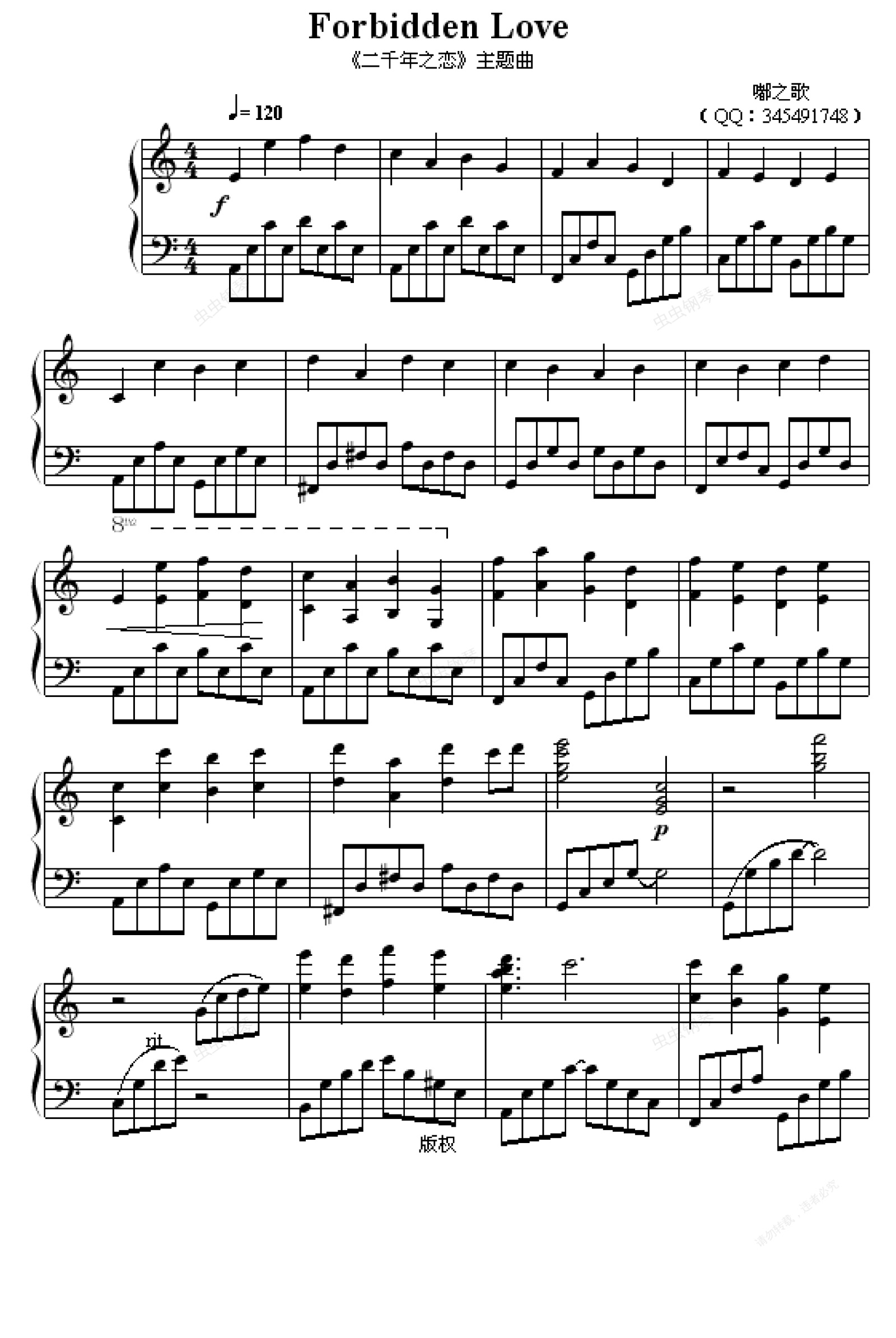 钢琴谱:Forbidden Love-《二千年之恋》主题曲