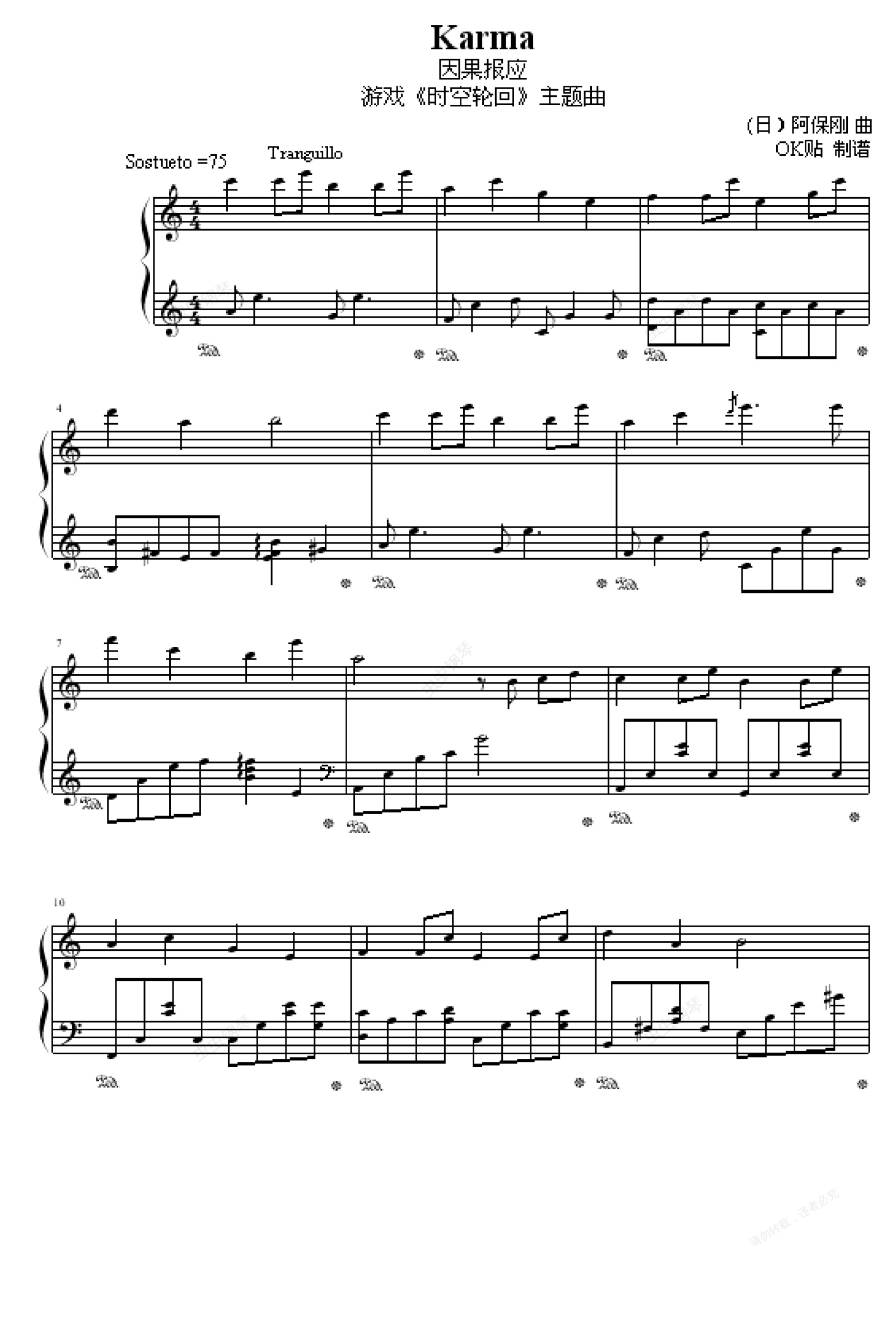 钢琴谱:Karma - 游戏《时空轮回》主题曲