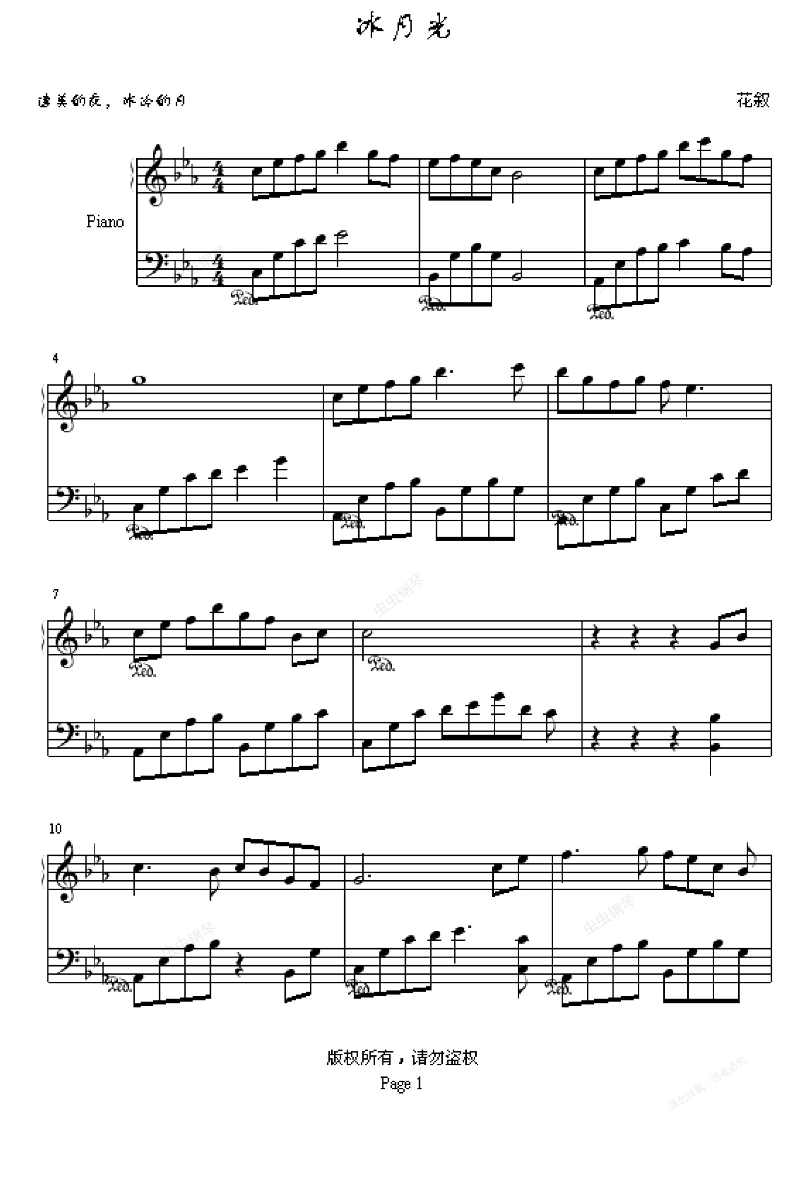 夜色迷茫,清风携来一丝凄楚.惟有月,幽香朦胧的月,抚慰游子思恋的心.月的美无与伦比.寂寥的夜总是多愁,而月却撒下一片温馨;漫长的夜总是孤独,而月却投下飘飘洒洒的影.凉夜里的月,美得温柔,美得如梦...    12岁的我也许很小,但是我对于音乐的感受却不是用年龄衡量,而是心灵的品读.    欢迎有同样爱好音乐的朋友对我的作品提出批评和建议,谢谢!
