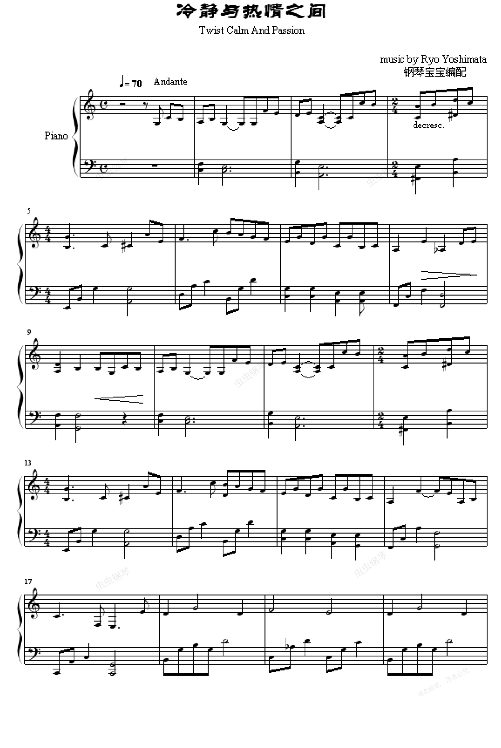 钢琴谱:冷静与热情之间-Twist Calm And Passion