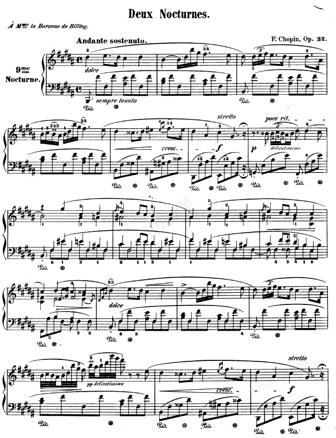 钢琴谱:B大调夜曲作品32号 -OP32 NO.2