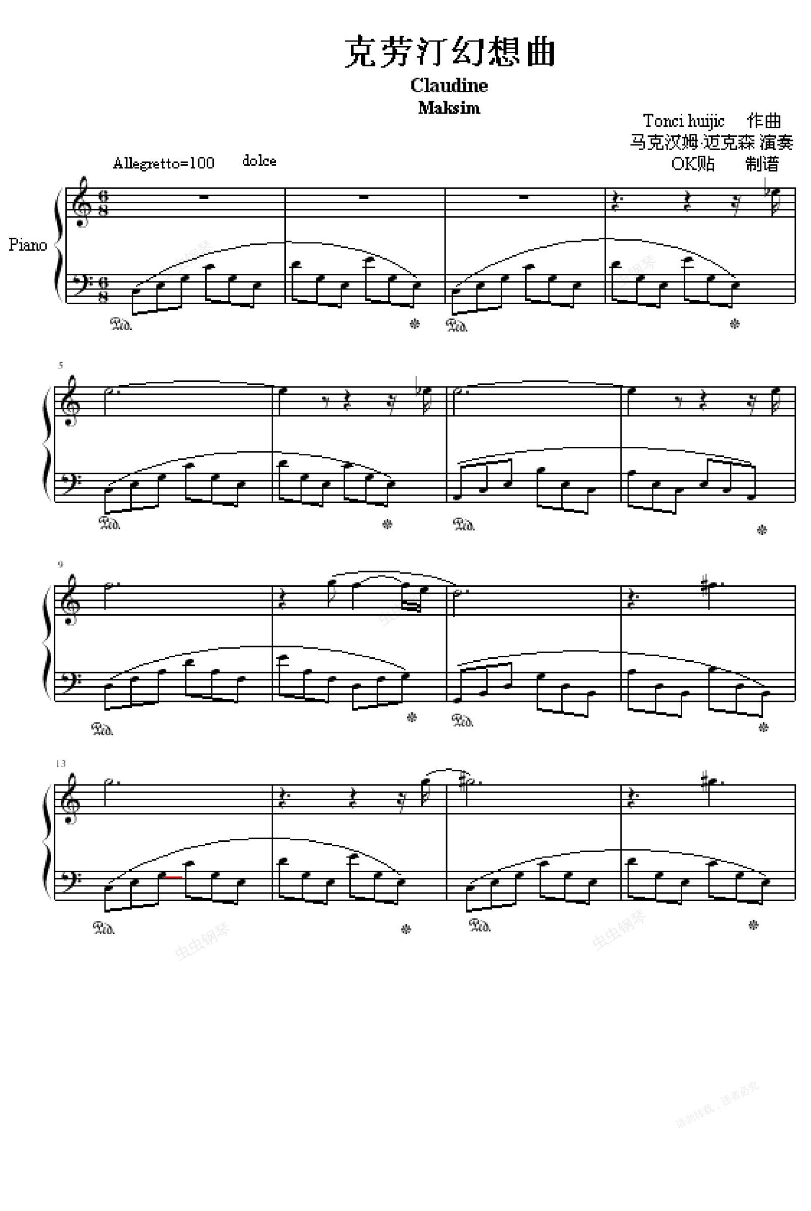 相信大家找这份谱很久了, 我也一样.找来找去都找不到, 只好自己抓取,但弄完后, 才发现网上有这首曲的MIDI, 我晕!导入一看,原来自己也抓得不差啊, 哈哈.特意在这里献给大家.
