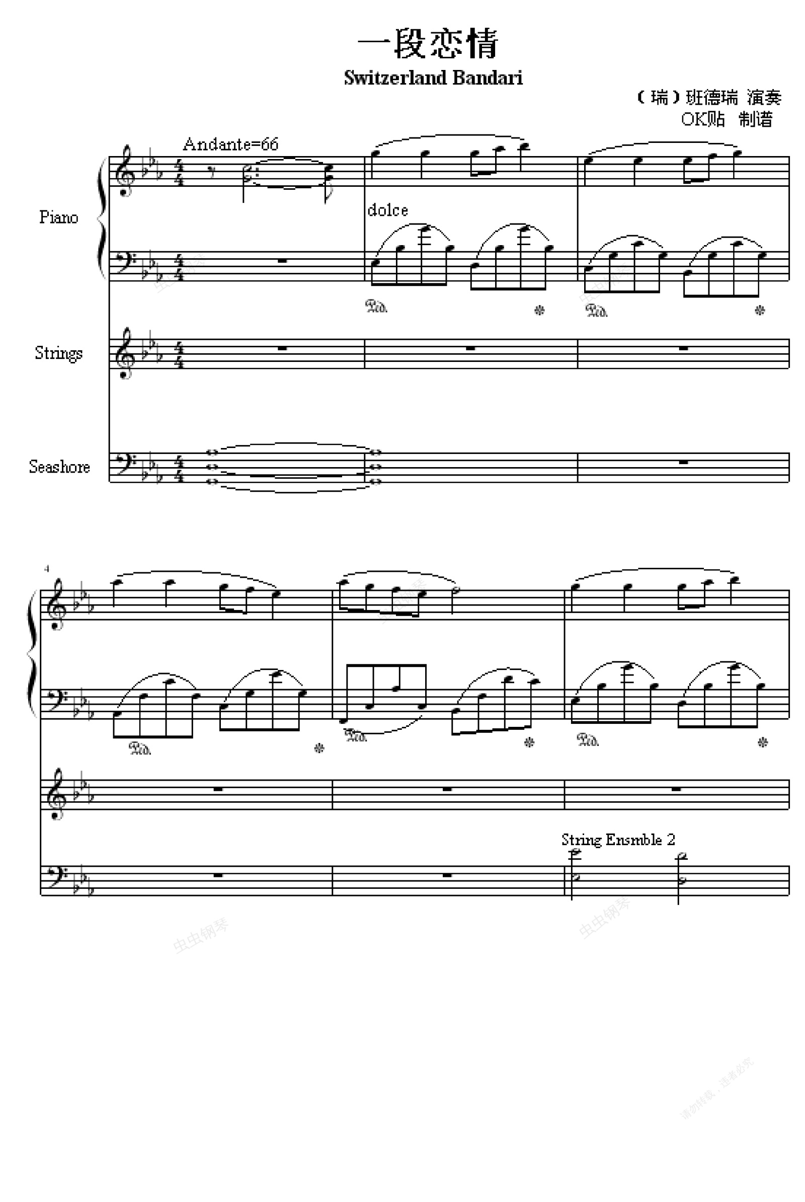 因为有爱的存在,大地才充满了喜悦。 初恋是甜蜜的,不管结果如何,毕竟经历过,也感到了它的美好和幸福。不否认,从这首曲中可以听到了来自远方的呼唤. 在这里,说明一下,这份谱是我自己编排的,要是想要钢琴独奏的朋友,只要在里把其余两个声部删去就可以了. 注:此曲原名《山涧》,选自班德瑞《春野》.