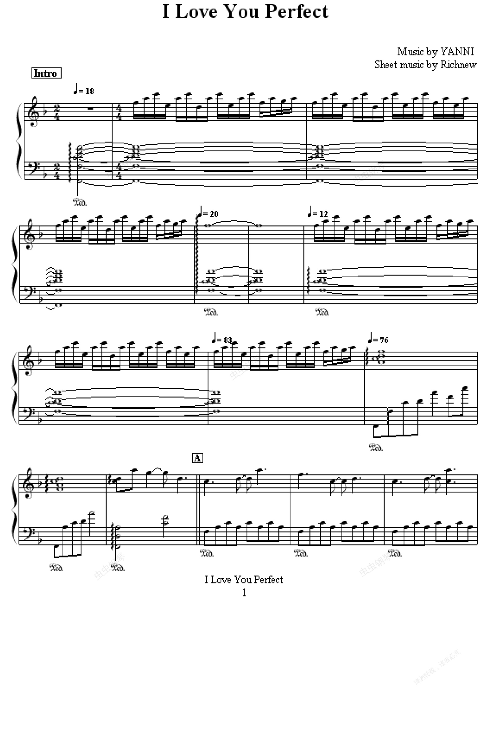 钢琴谱:I Love You Perfect