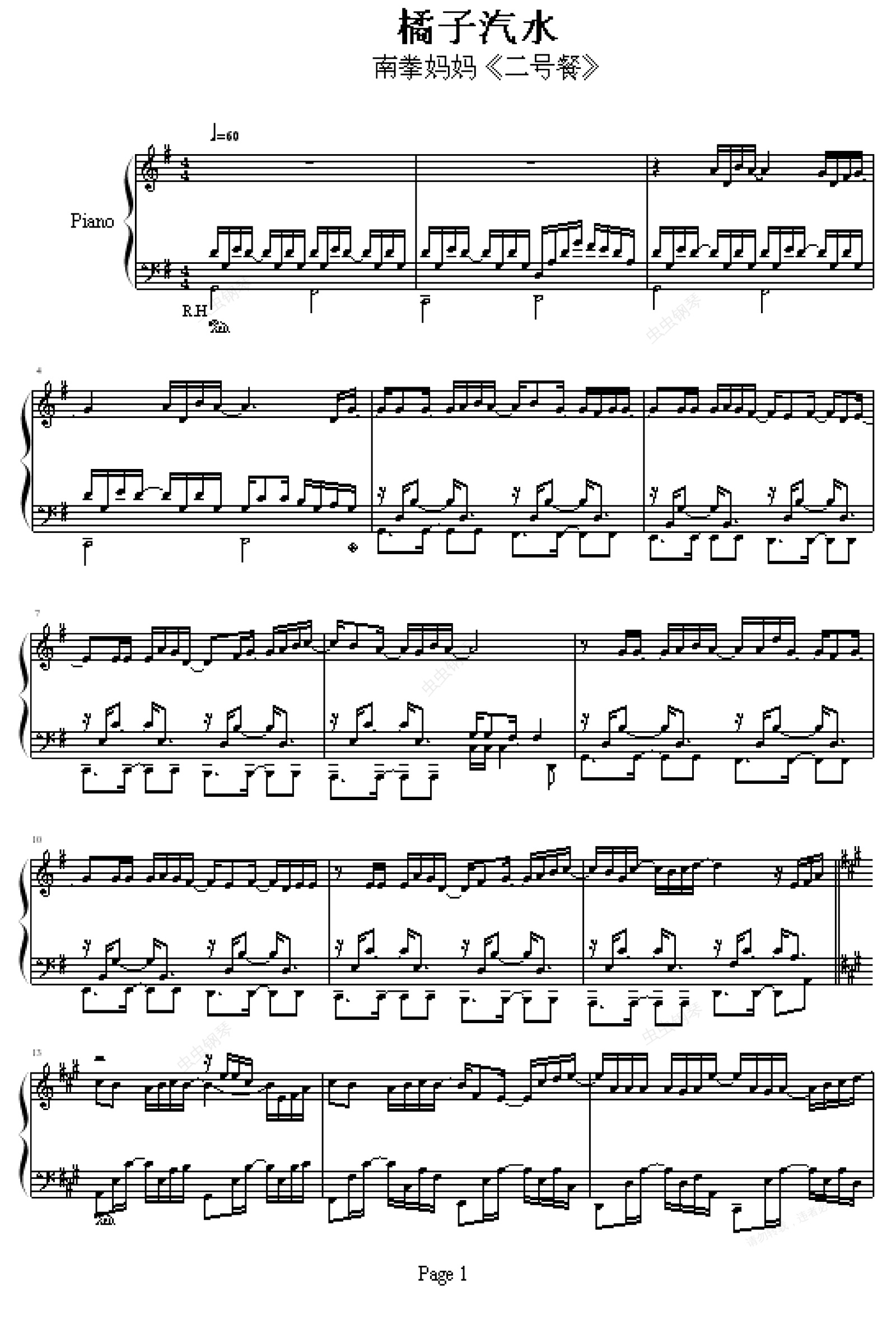钢琴谱:橘子汽水
