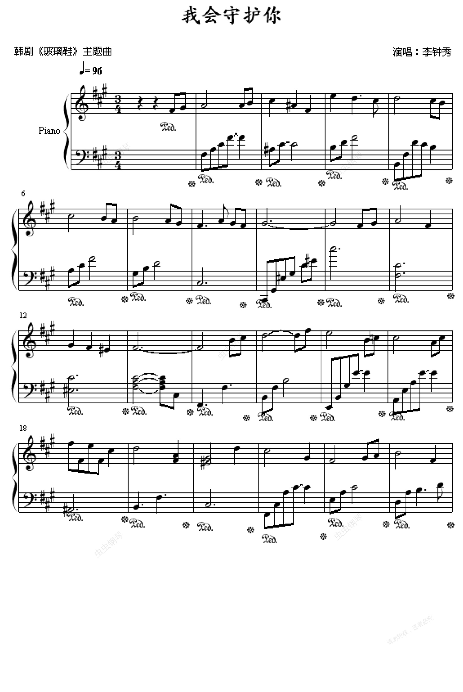 钢琴谱:我会守护你 - 韩剧《玻璃鞋》主题曲