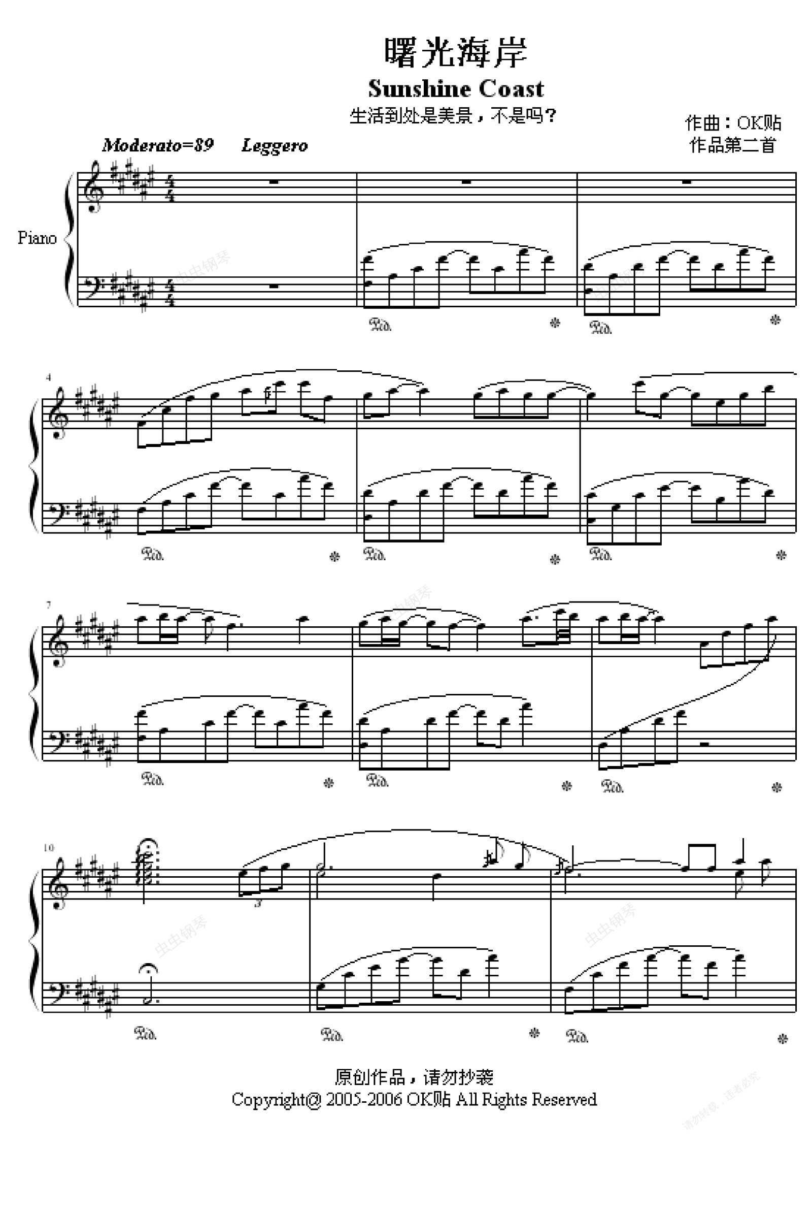 这曲左手伴奏非常简单,可能听得太多新世纪音乐的缘故,所以创作的这曲也有轻音乐的风味,请大家欣赏一下。