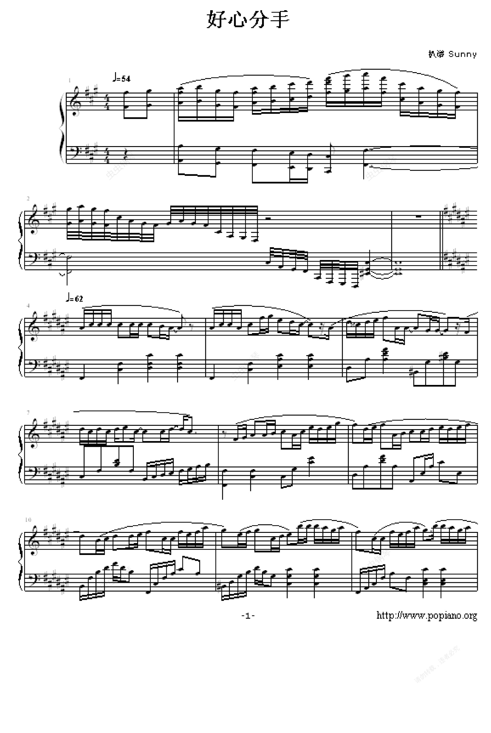 钢琴谱:好心分手