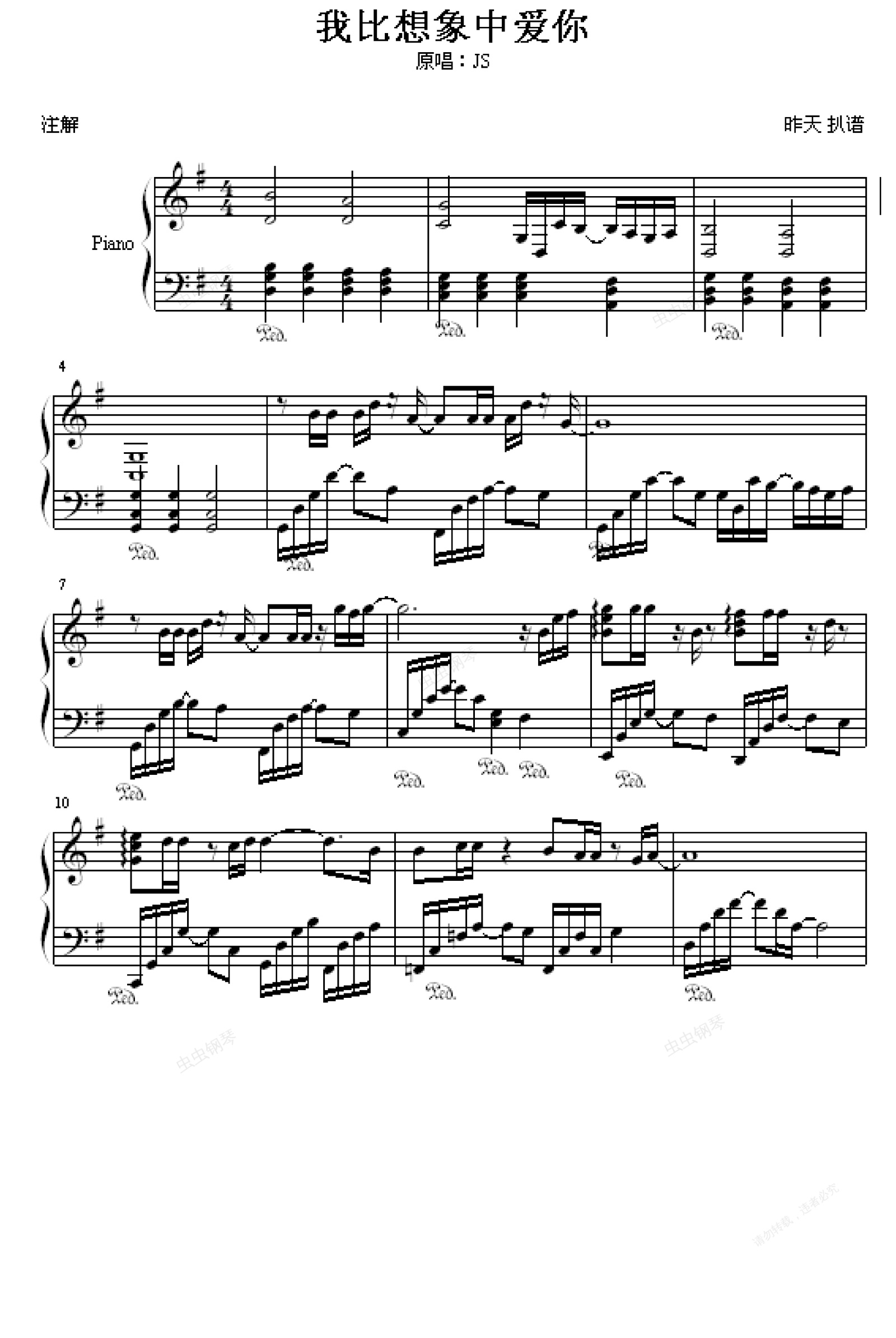钢琴谱:我比想象中爱你