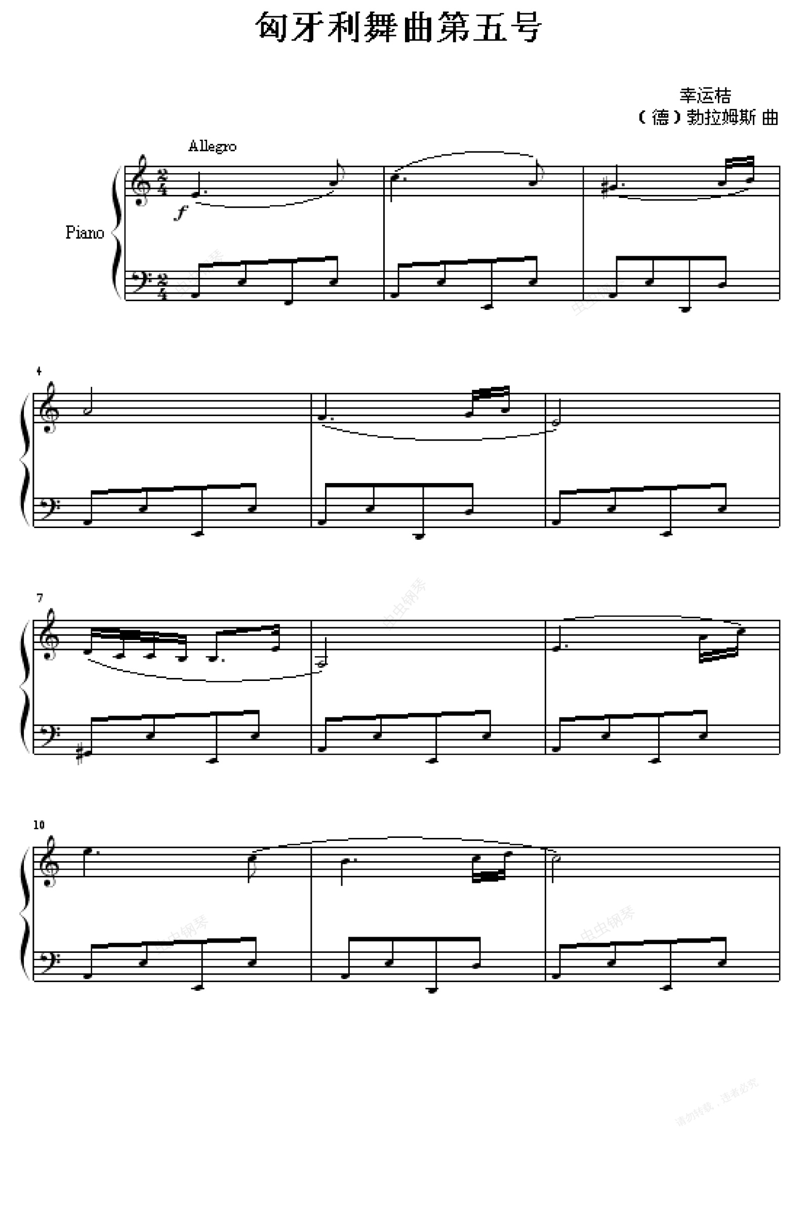 钢琴谱:匈牙利舞曲第五号