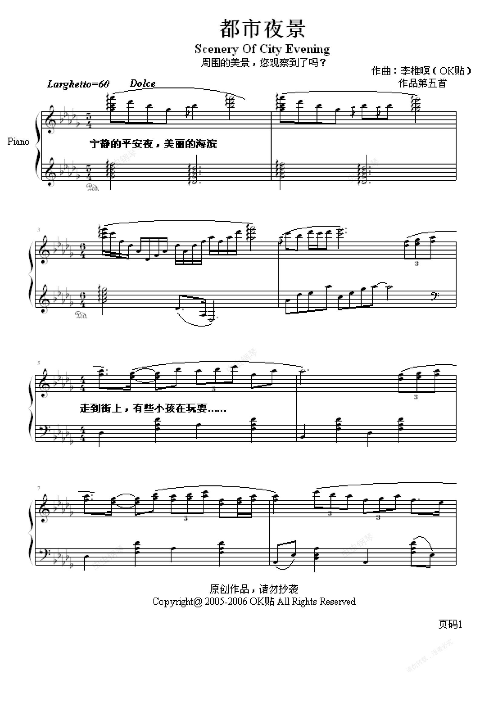 您的位置: 首页 > 钢琴谱库 > 都市夜景