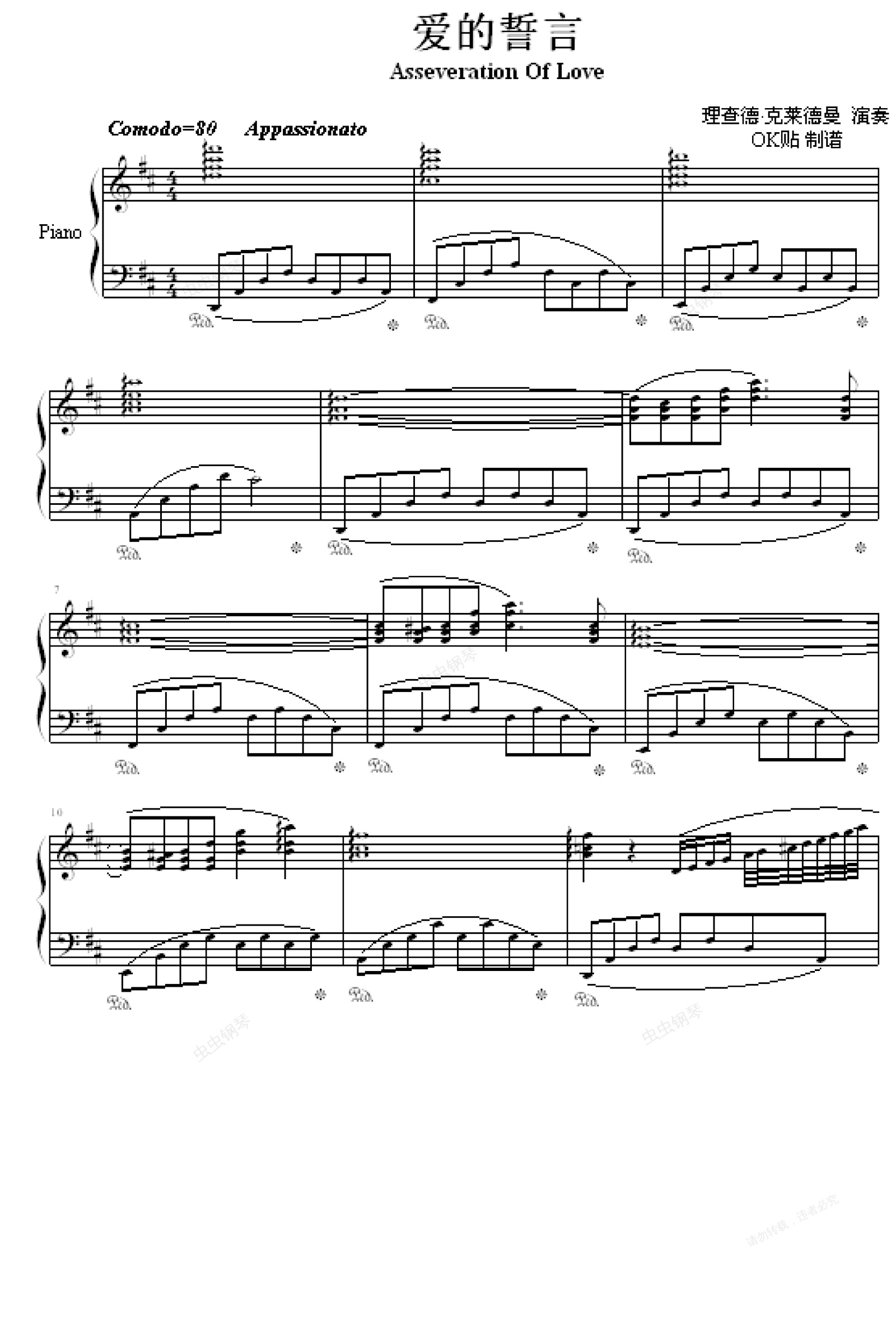 这首曲找来找去都找不到谱,只好扒出来了,请见谅。顺便说一声,我的确很喜欢理查德·克莱德曼的曲,如果哪一位也和我一样喜欢的话,那请加我QQ^-^