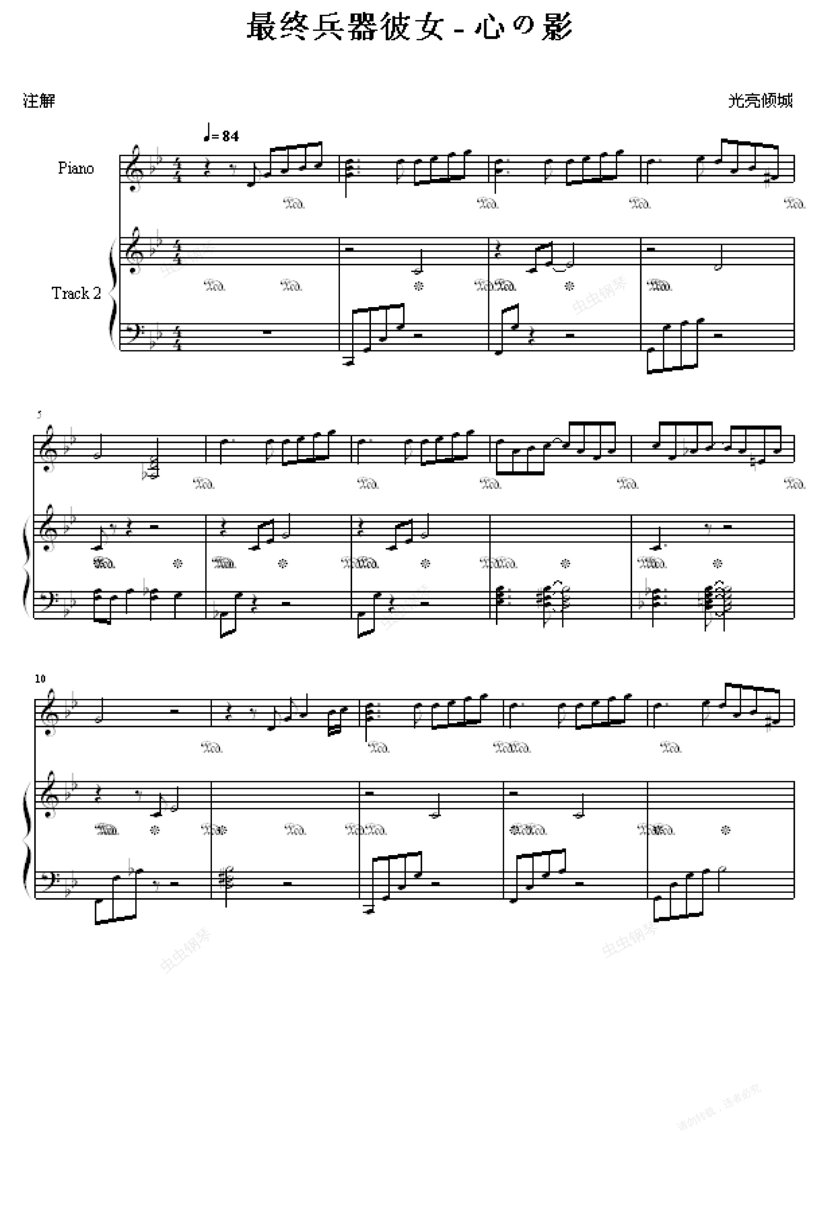 钢琴谱:心の影