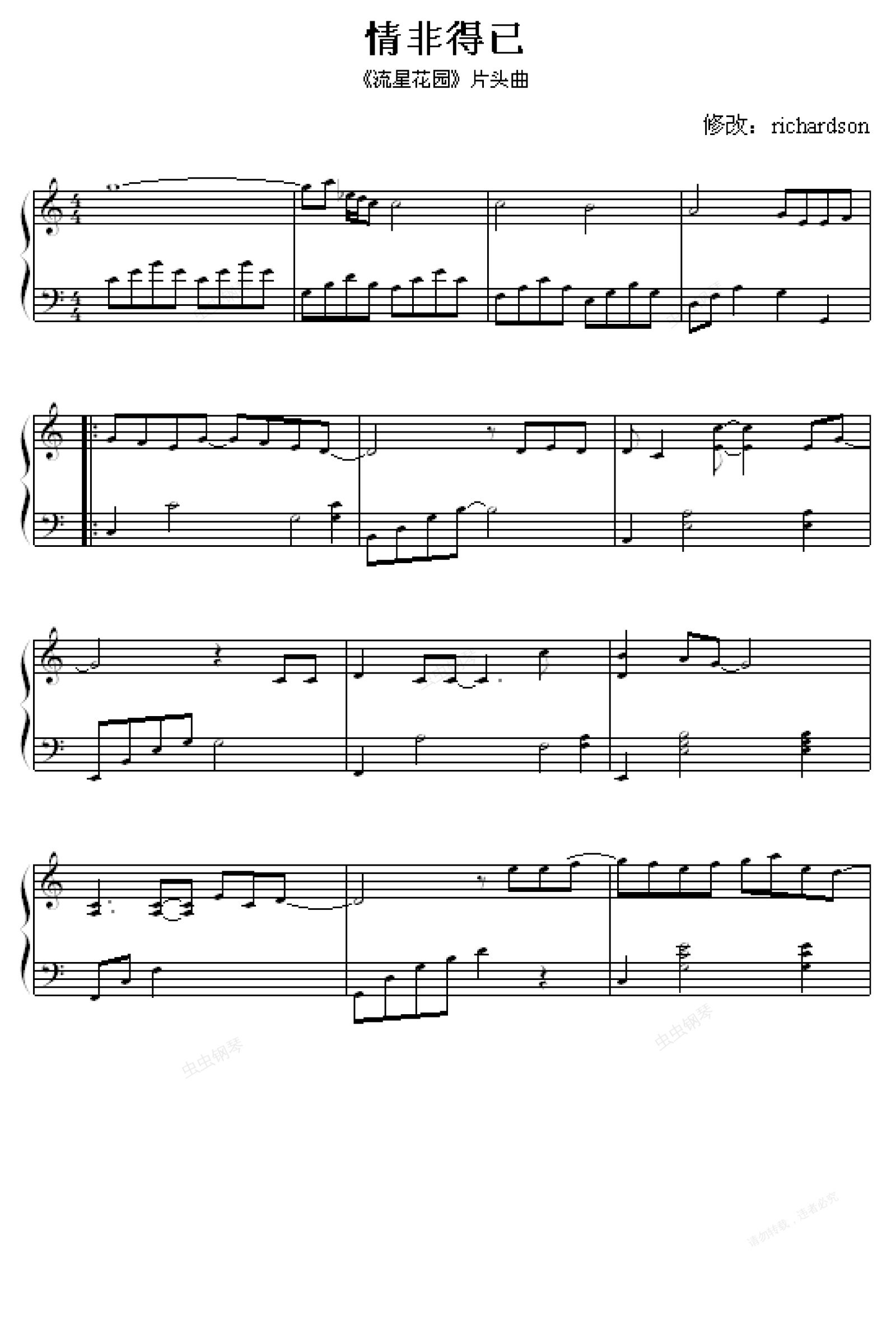钢琴谱:情非得已