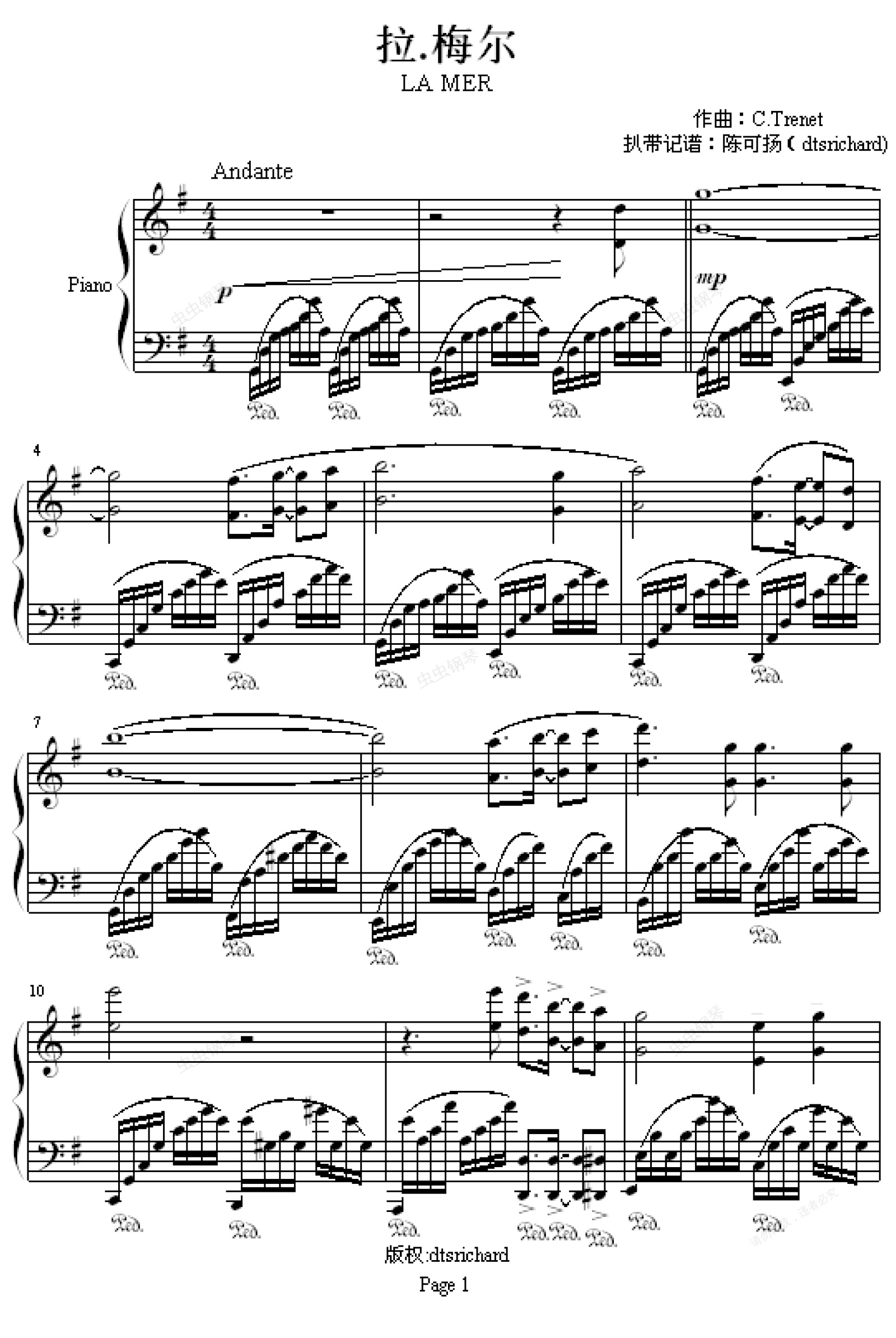 钢琴谱:拉.梅尔