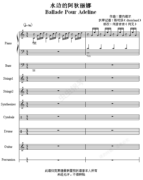钢琴谱:水边的阿狄丽娜 -(乐队总谱版)