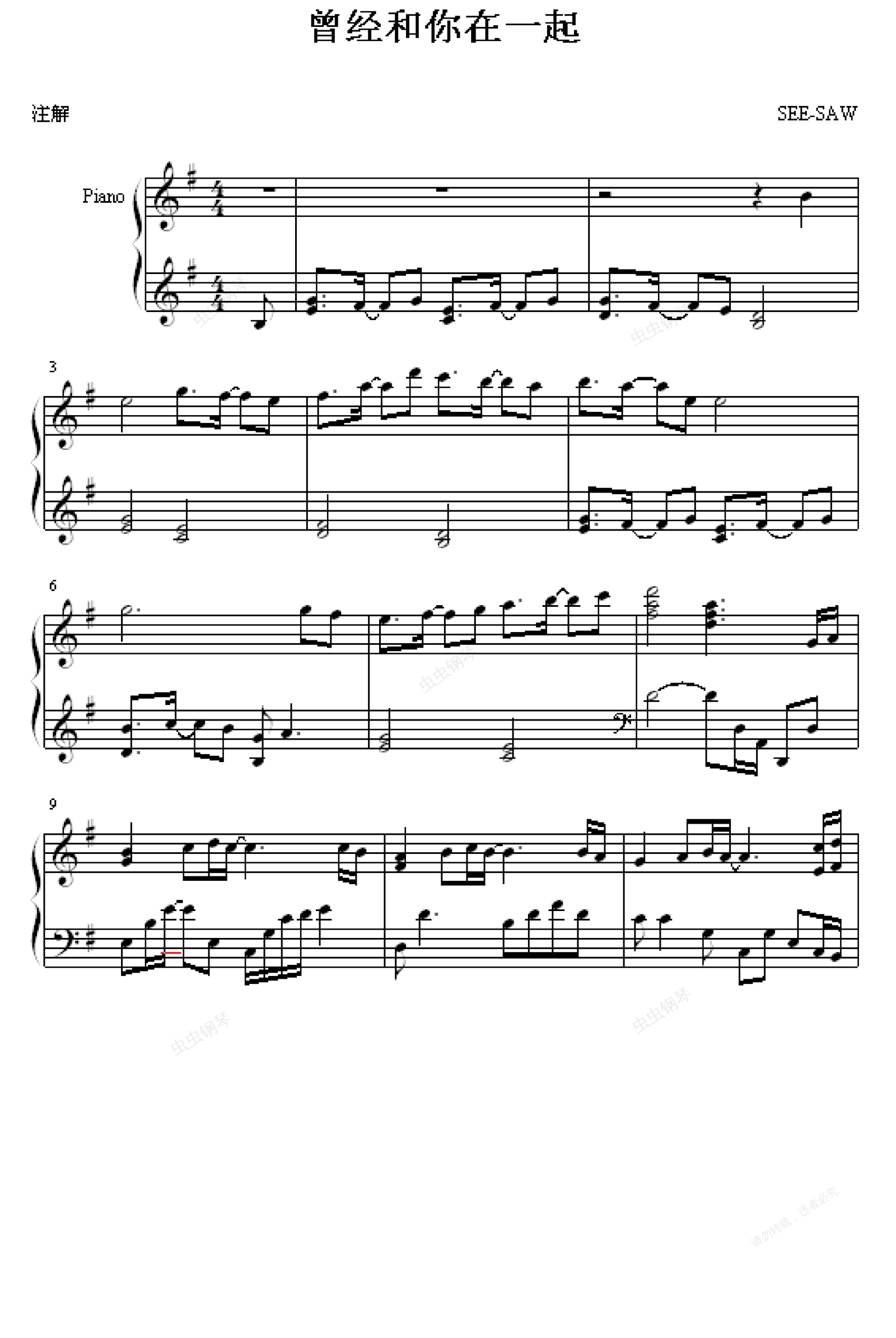 钢琴谱:曾经和你在一起