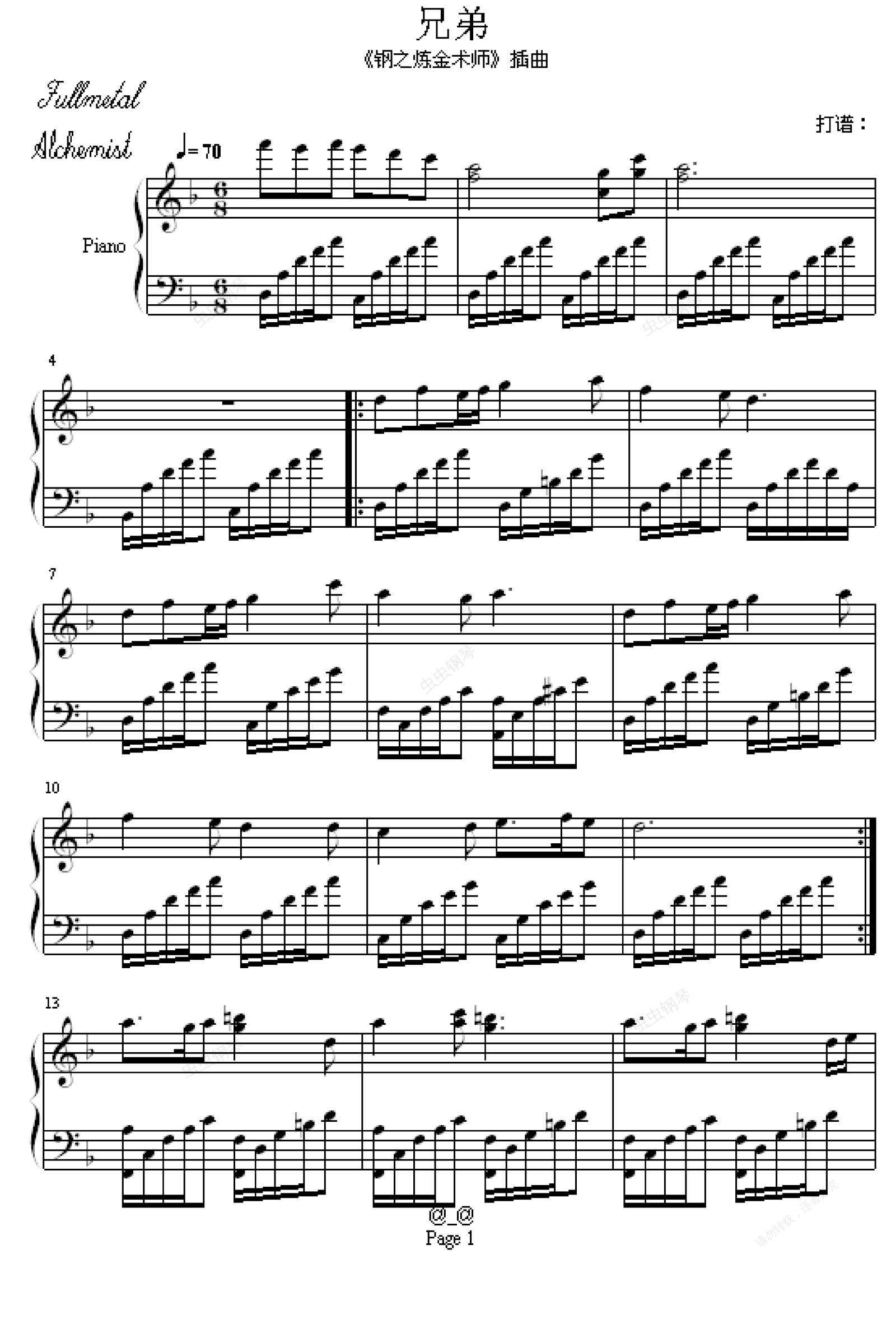 钢琴谱:兄弟-钢之炼金术师