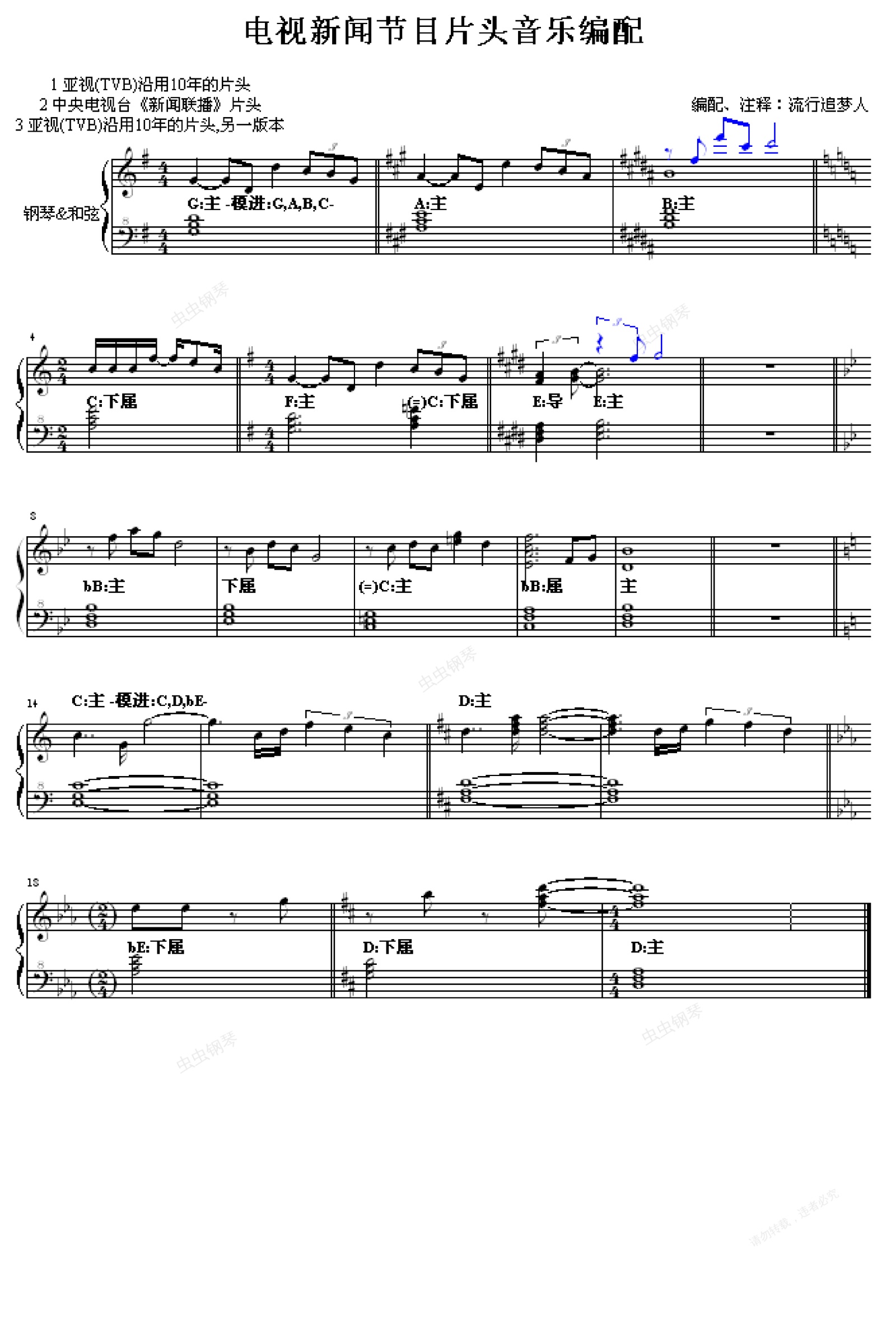 钢琴谱:电视新闻节目片头音乐编配