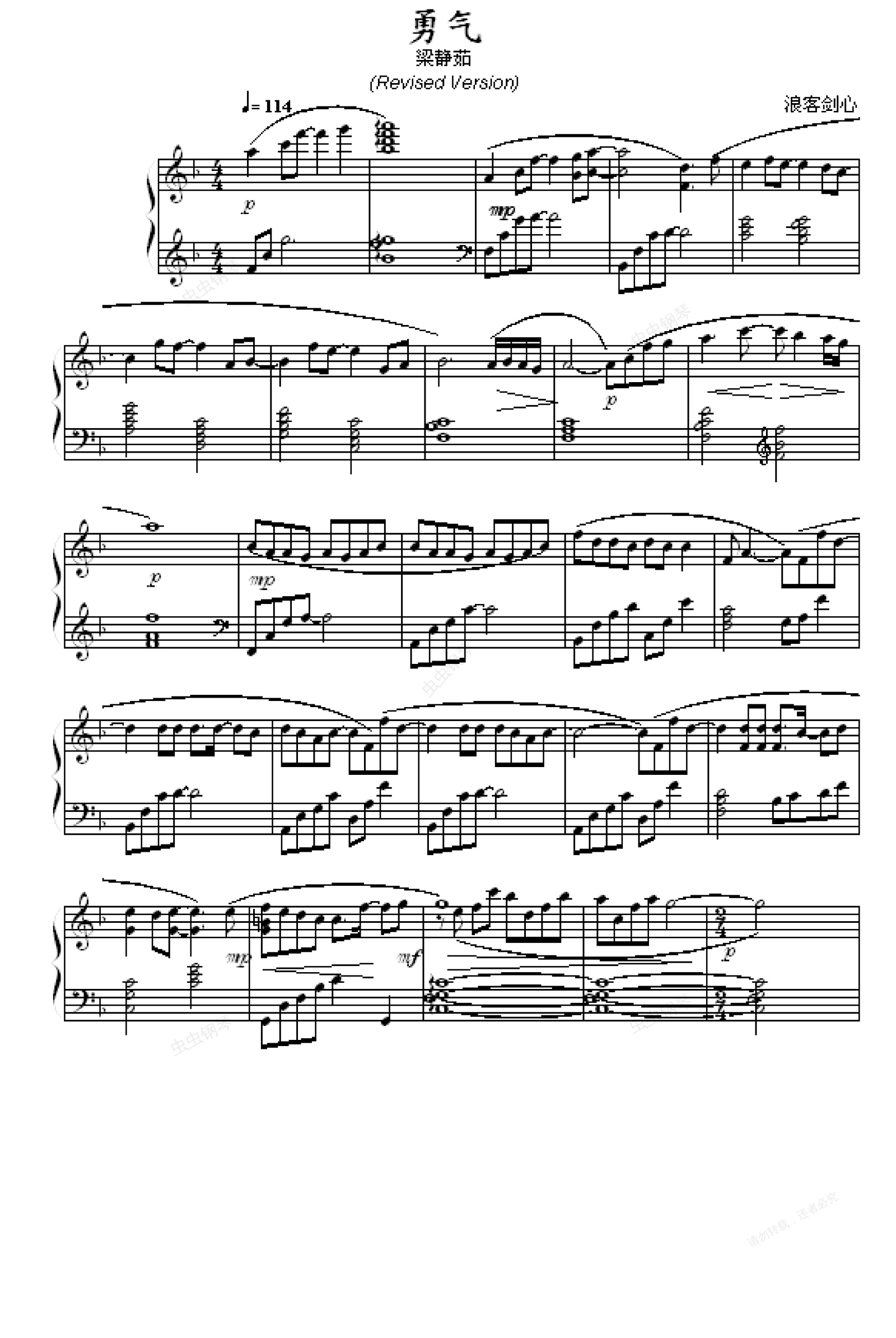 钢琴谱:勇气 - 混血版