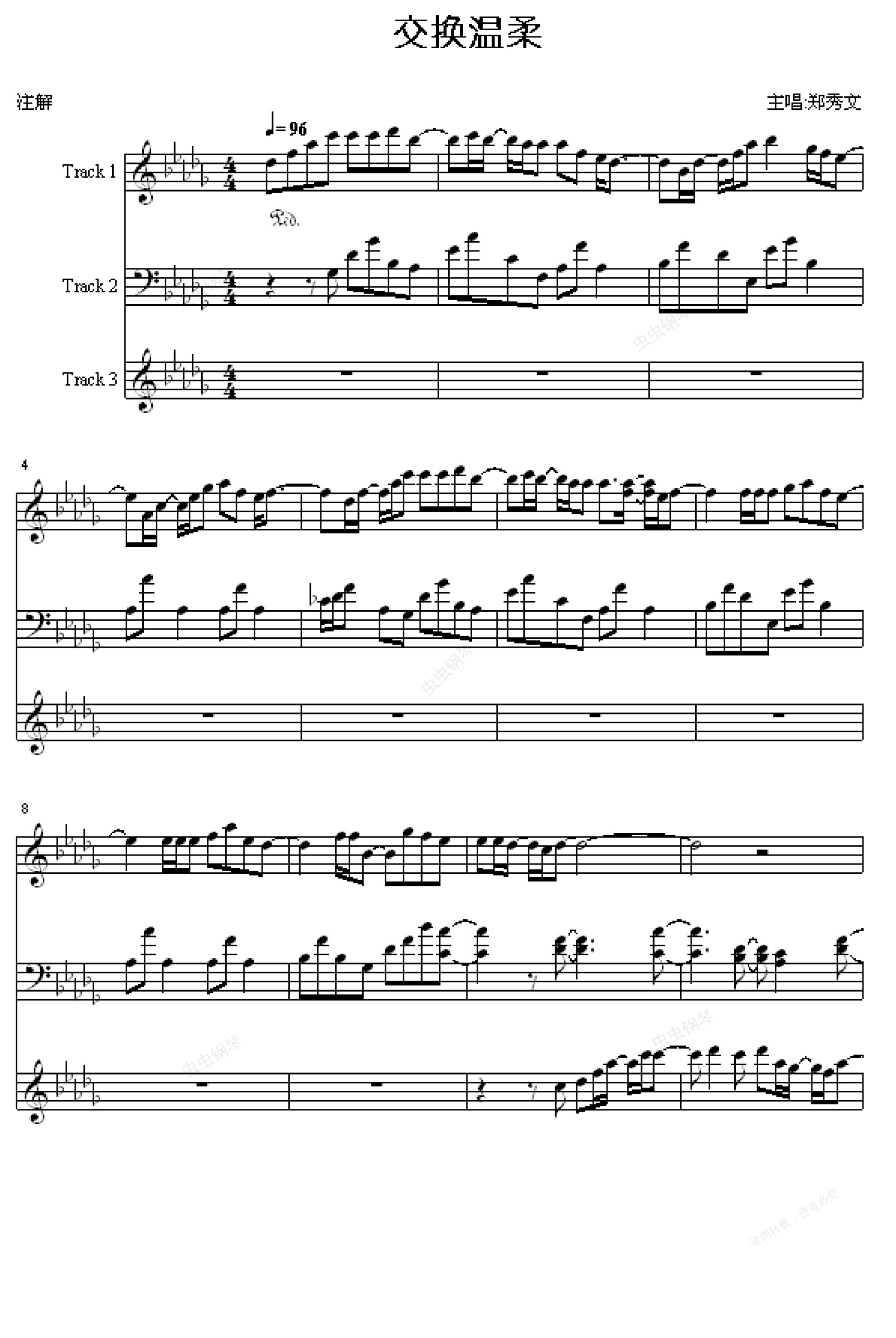钢琴谱:交换温柔