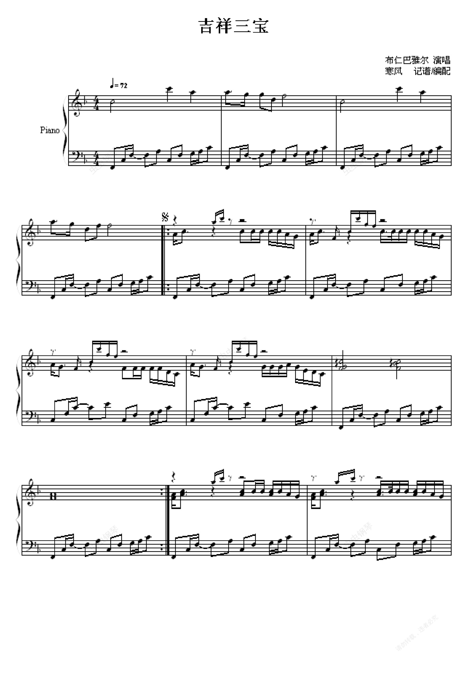 钢琴谱:吉祥三宝
