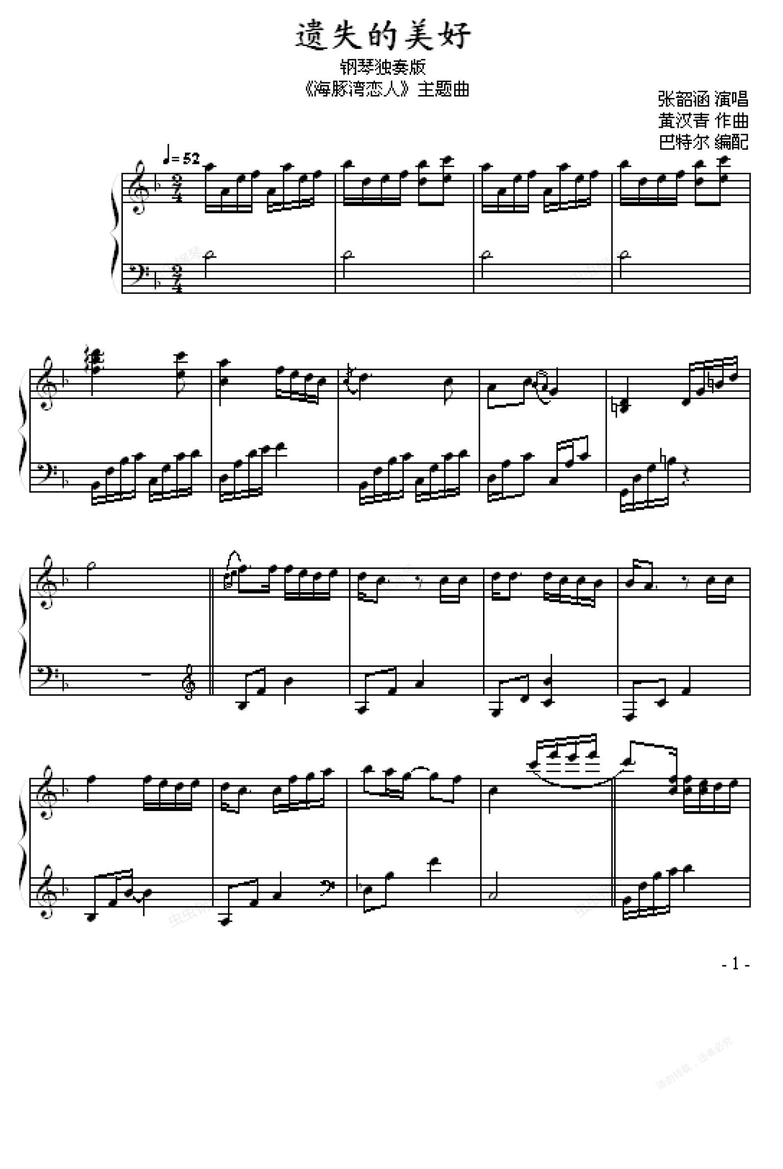钢琴谱:遗失的美好 - 巴特尔编配版