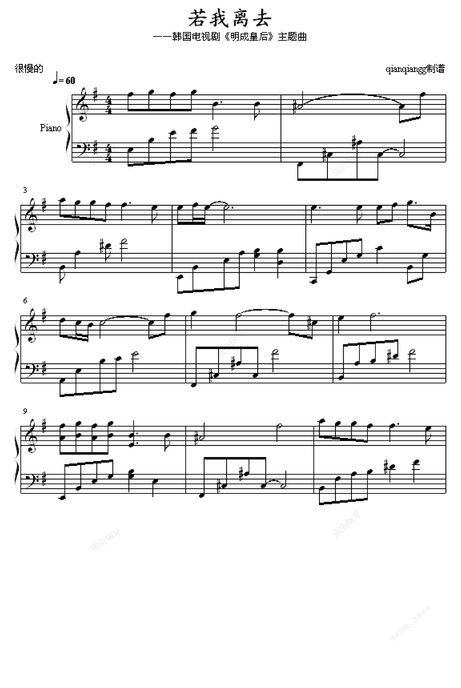 钢琴谱:若我离去 -韩剧《明成皇后》主题曲