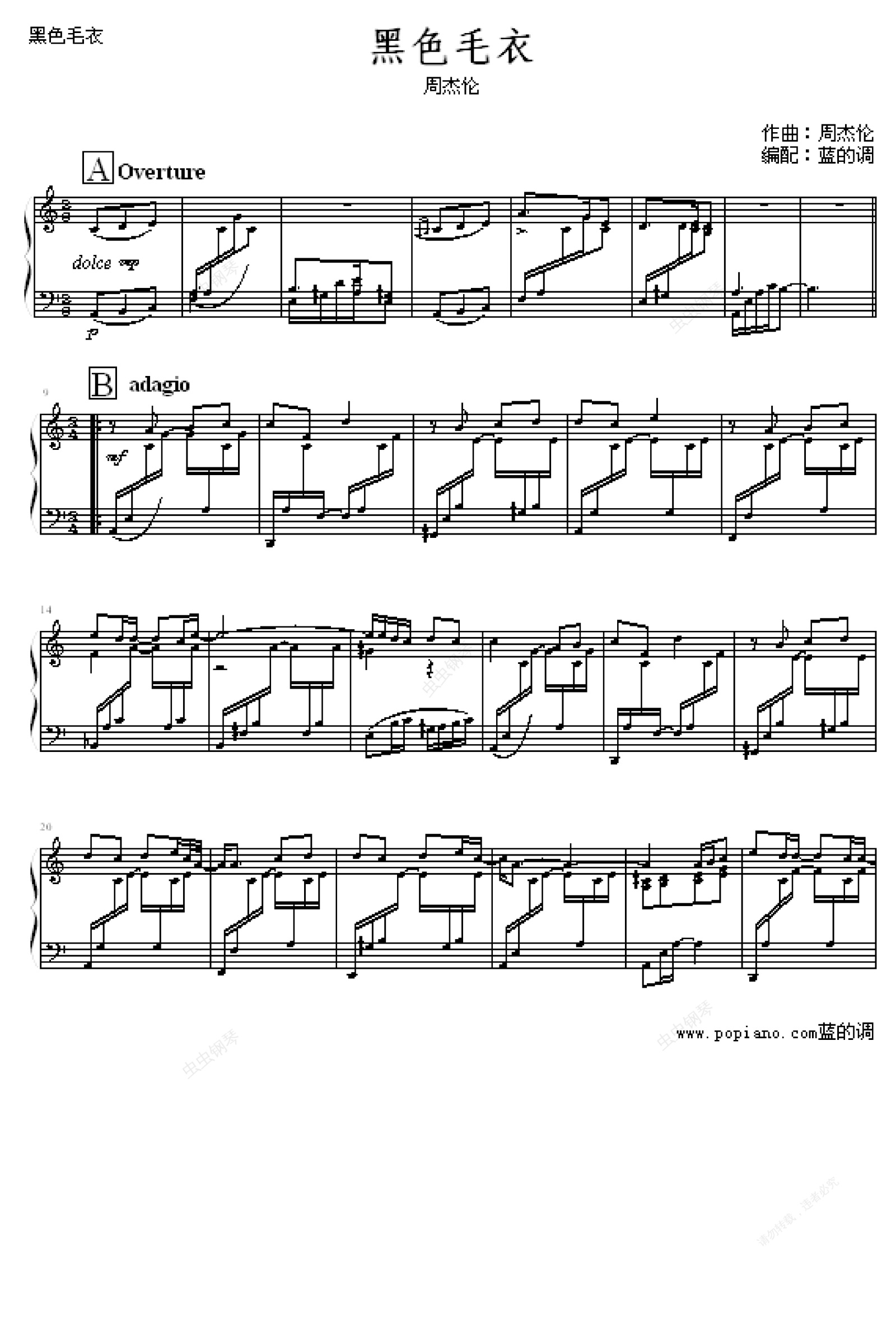 钢琴谱:Jay《黑色毛衣》演奏谱 -蓝的调编配版