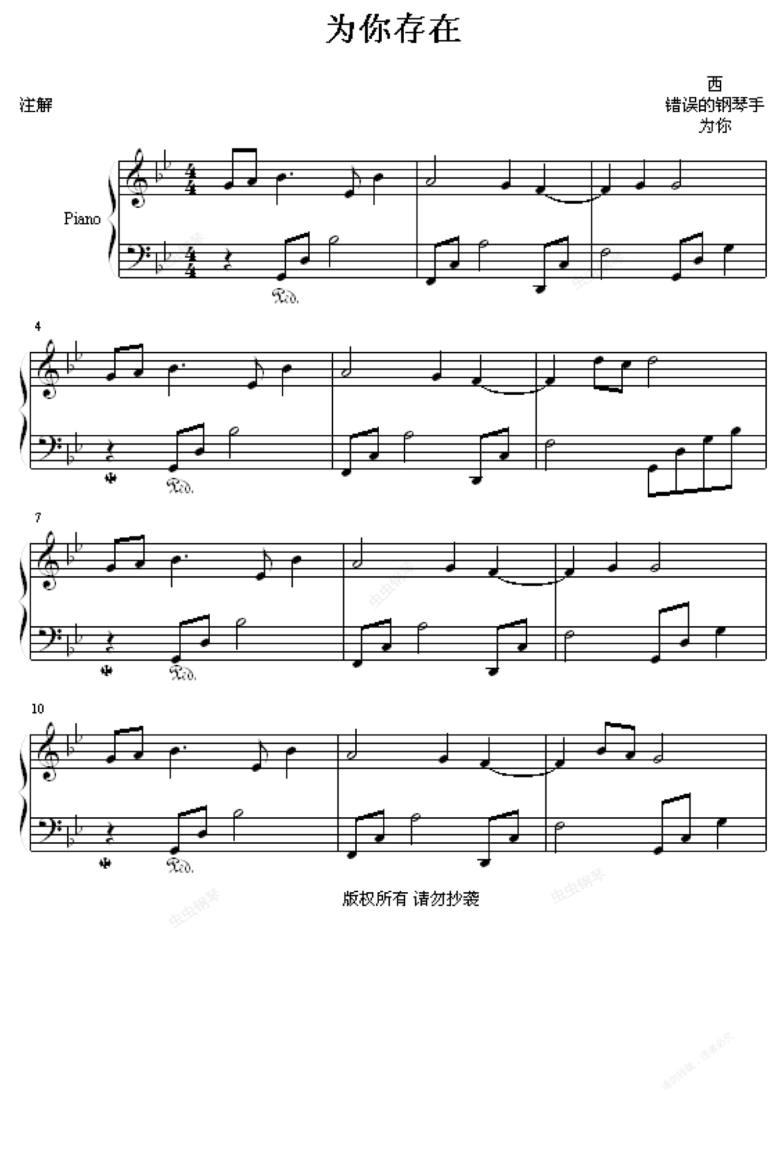钢琴谱:为你存在