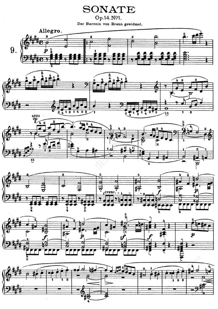 钢琴谱:E大调第九钢琴奏鸣曲 Op. 14 No—1