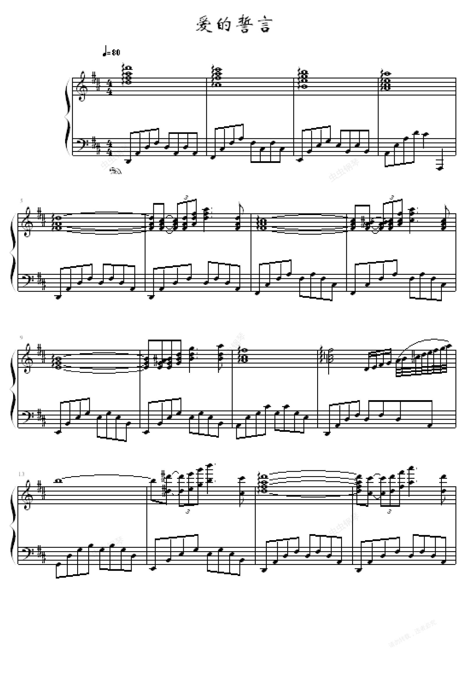 克莱德曼的老歌。在站内曾看到过这首曲子,但是听过钢琴谱后,觉得与克莱德曼的原作有不少出入,尤其是在和旋和节奏上。出于对原汁原味的追求,特依照克莱德曼的原声带记录编配该谱,供大家参考。