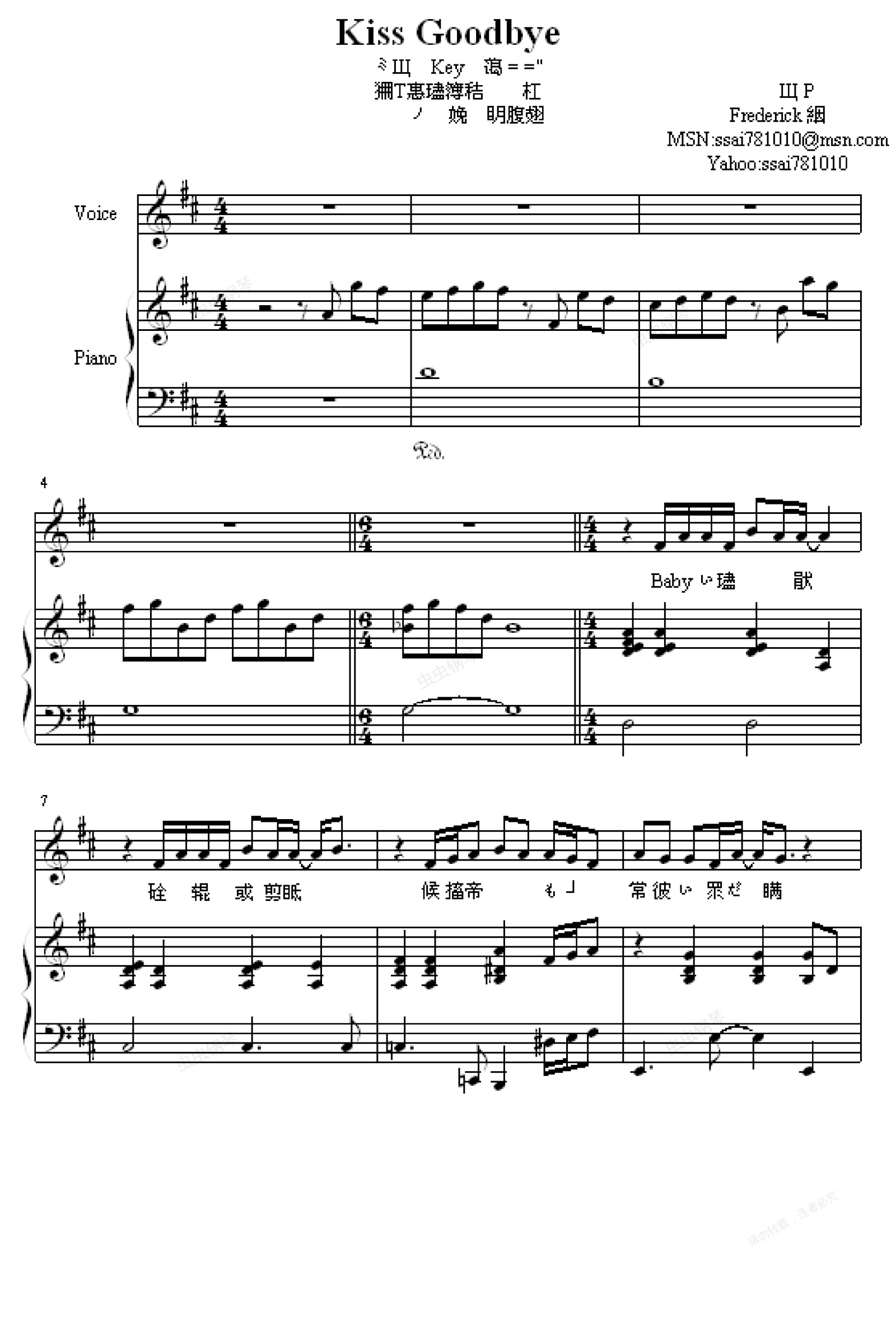 钢琴谱:Kiss goodbye伴奏版