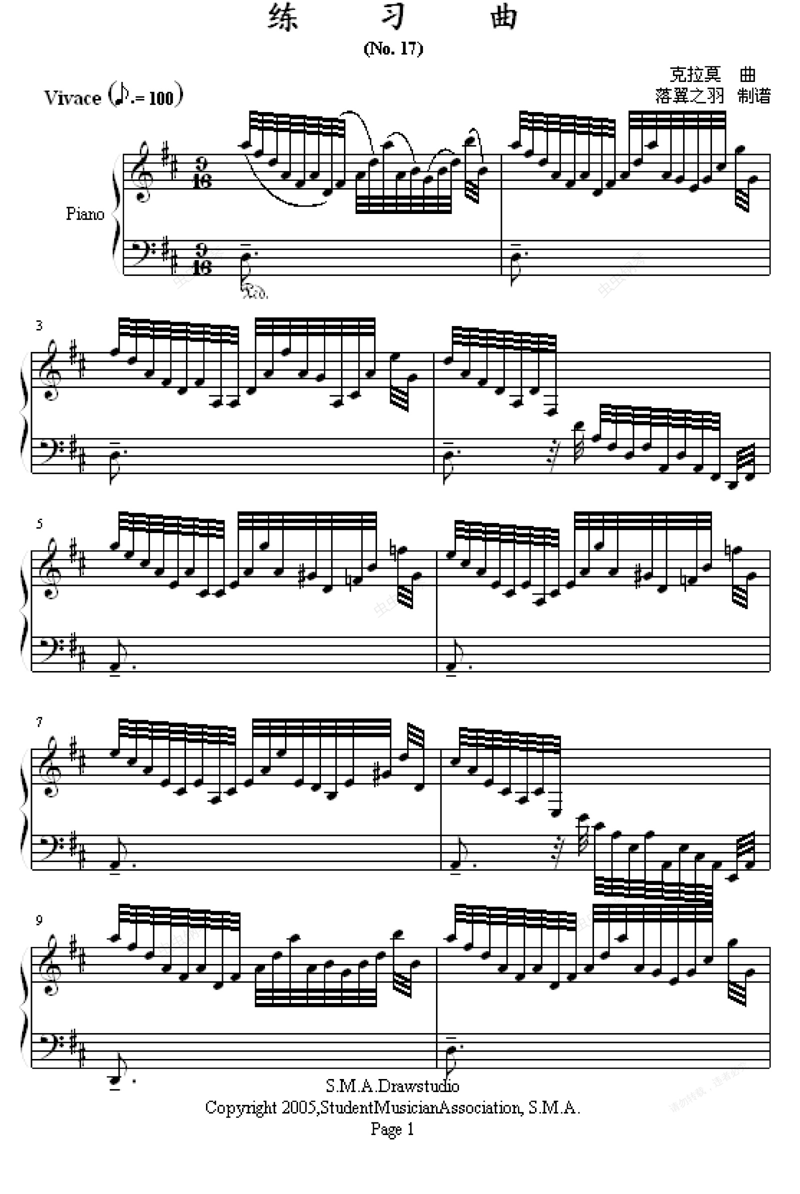 钢琴谱:练习曲No.17=落翼之羽制谱