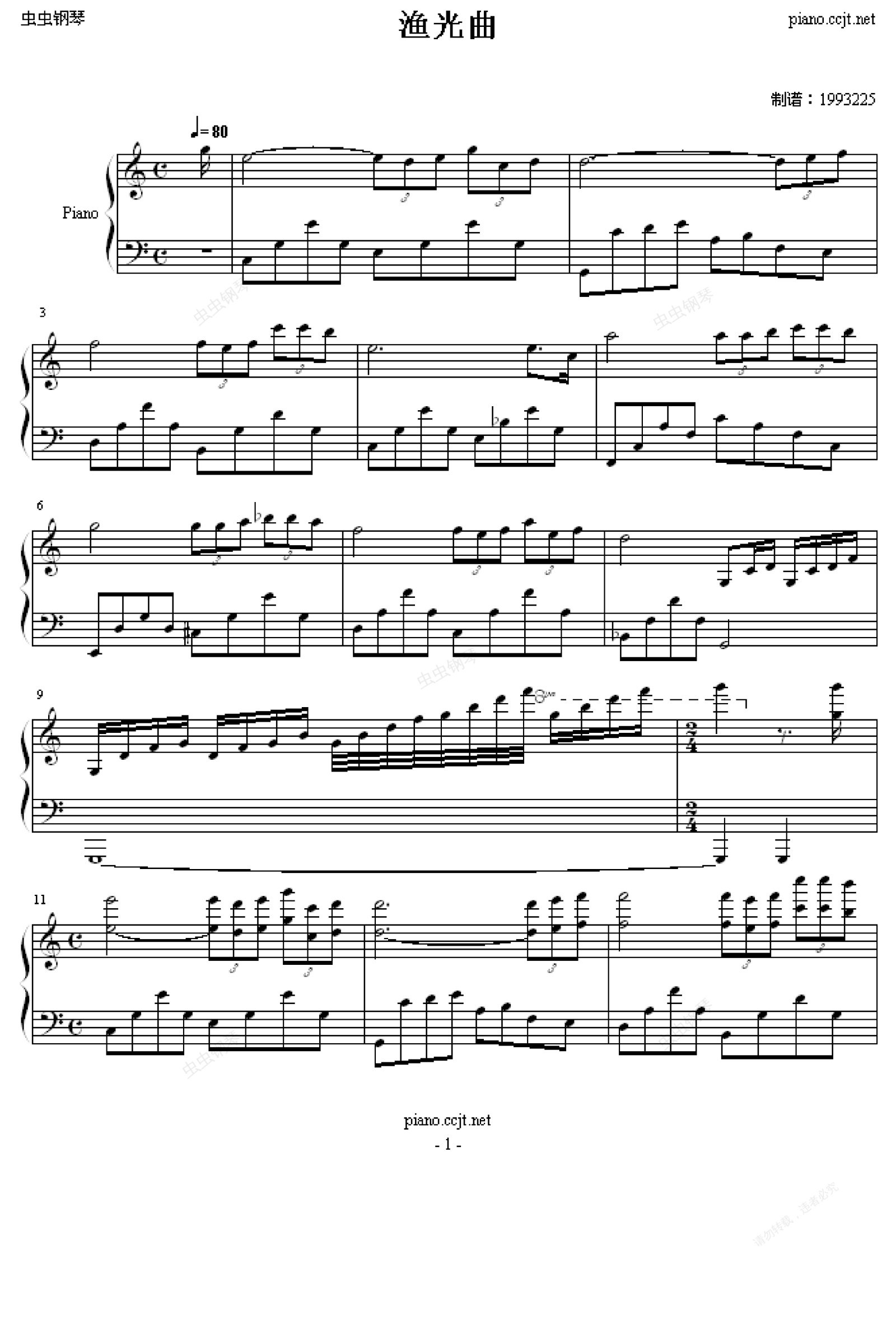 钢琴谱:渔光曲 -总谱