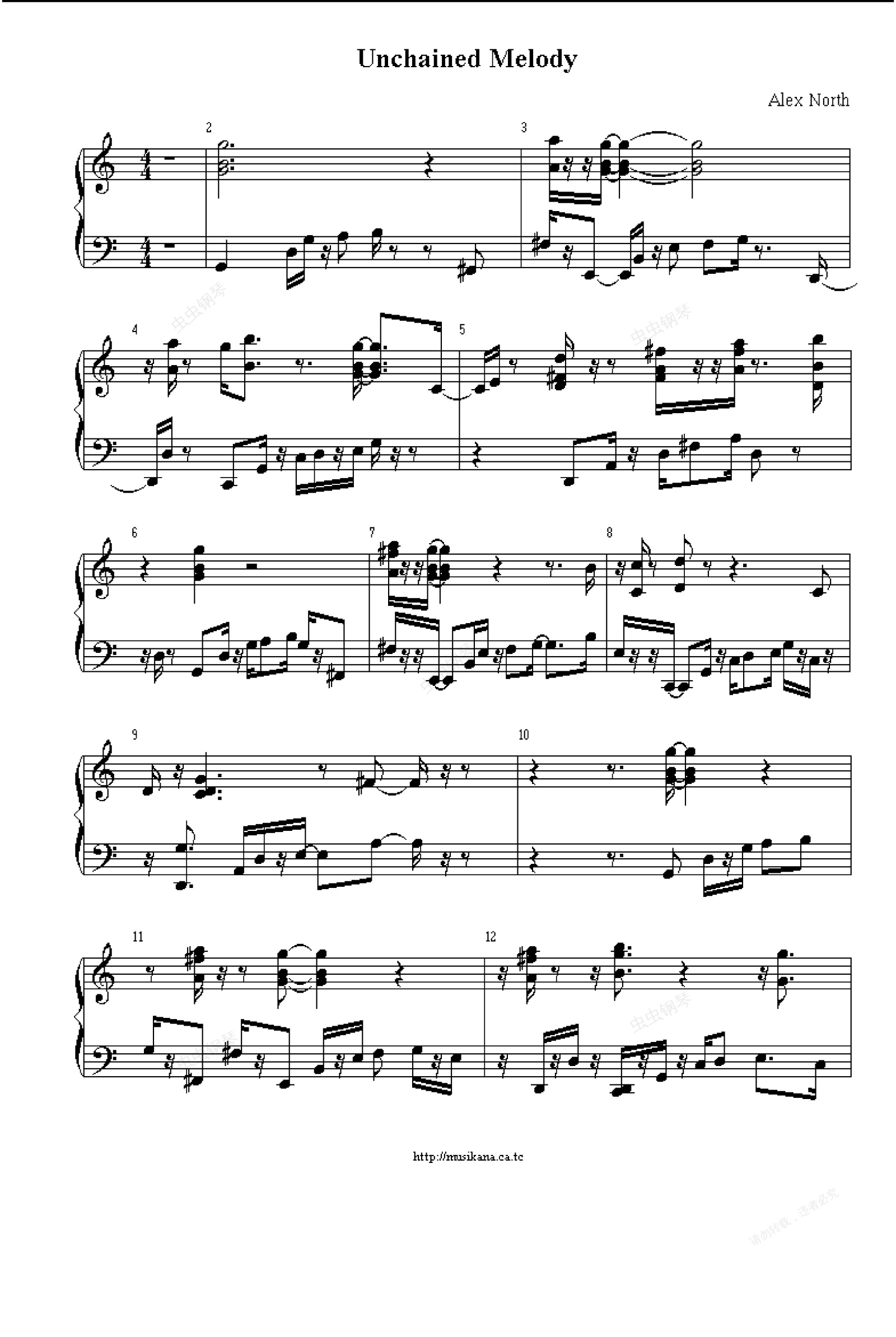 钢琴谱:Unchained Melody-人鬼情未了