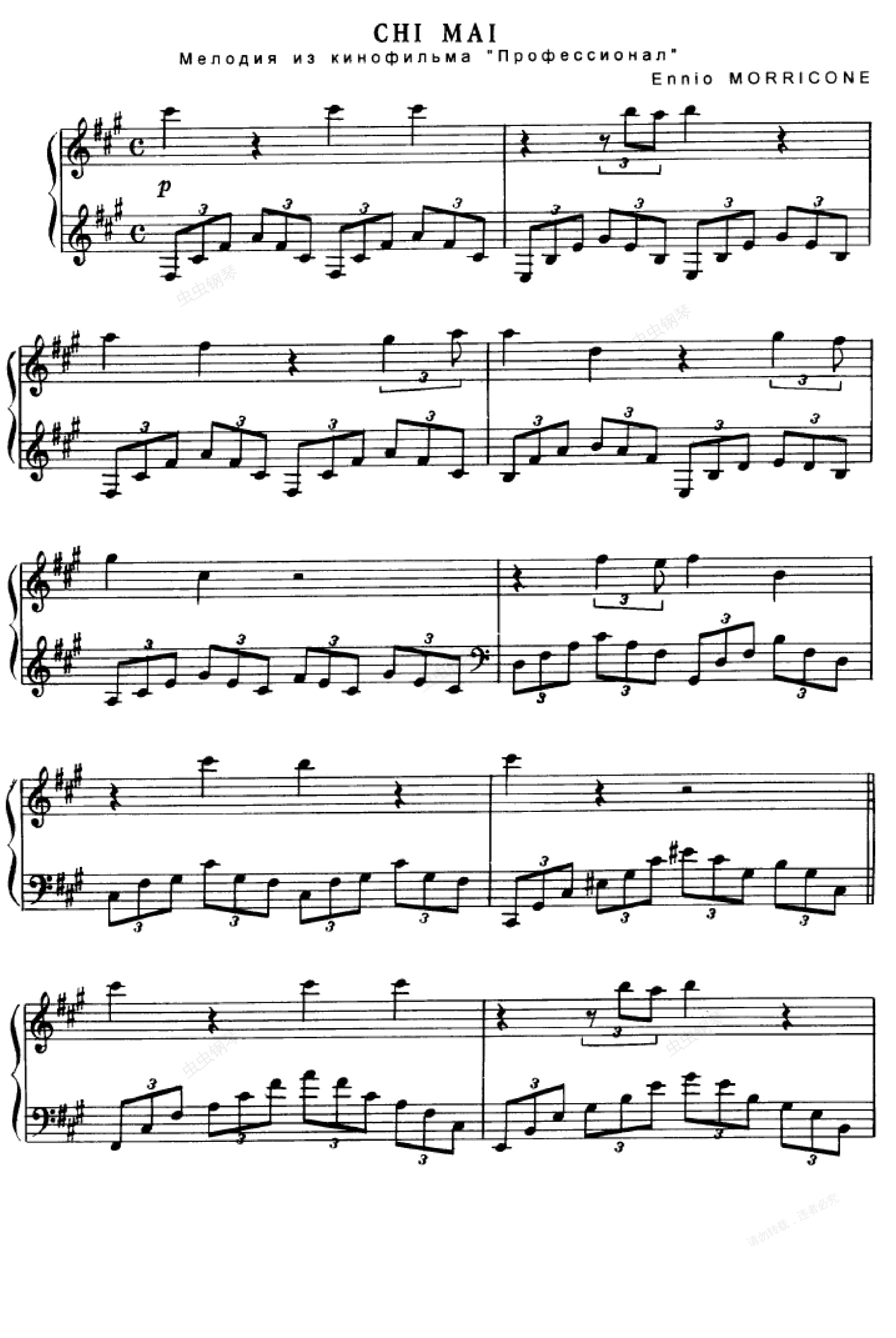 钢琴谱:Chi mai-电影《Maddalena》主题曲